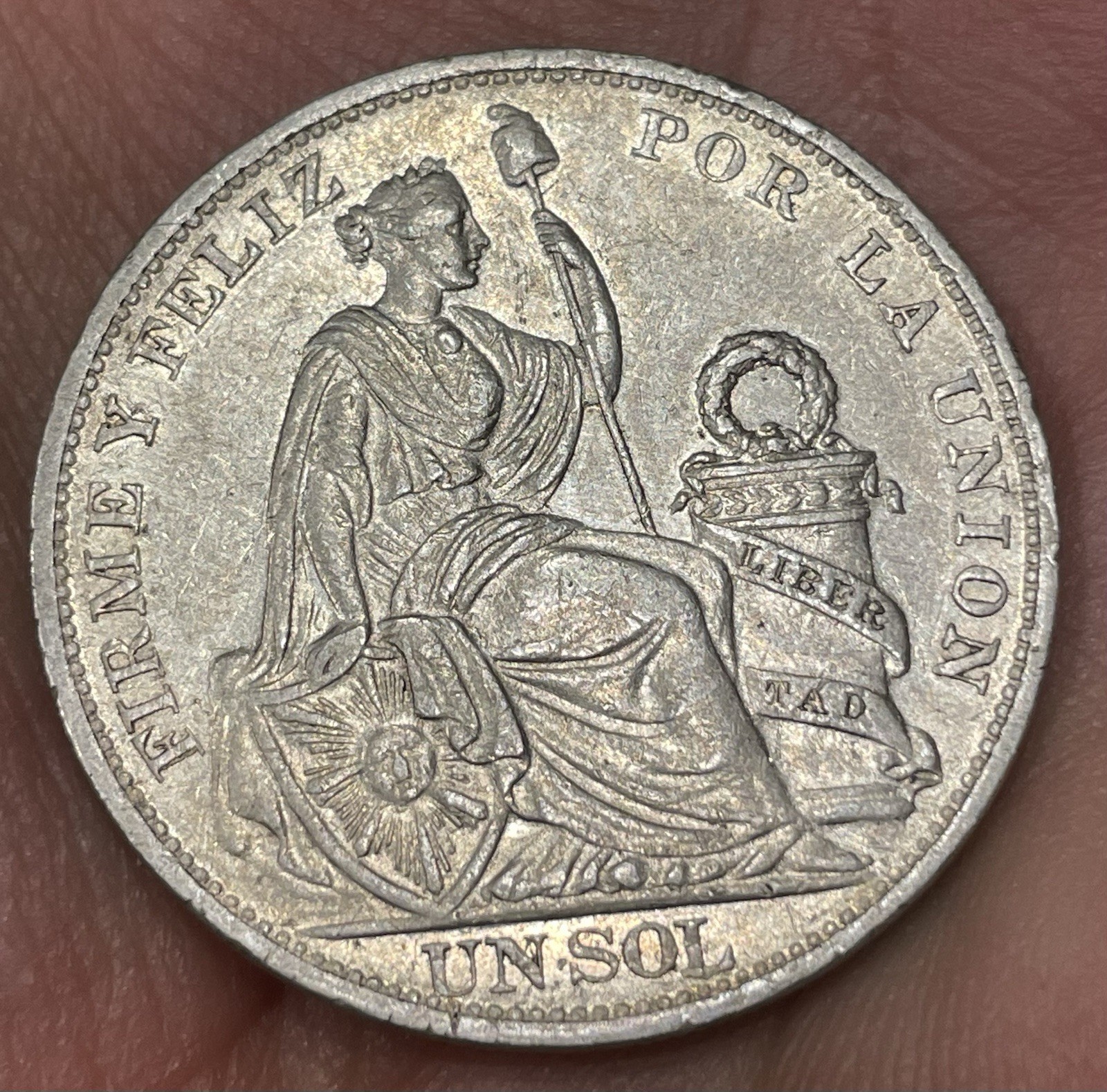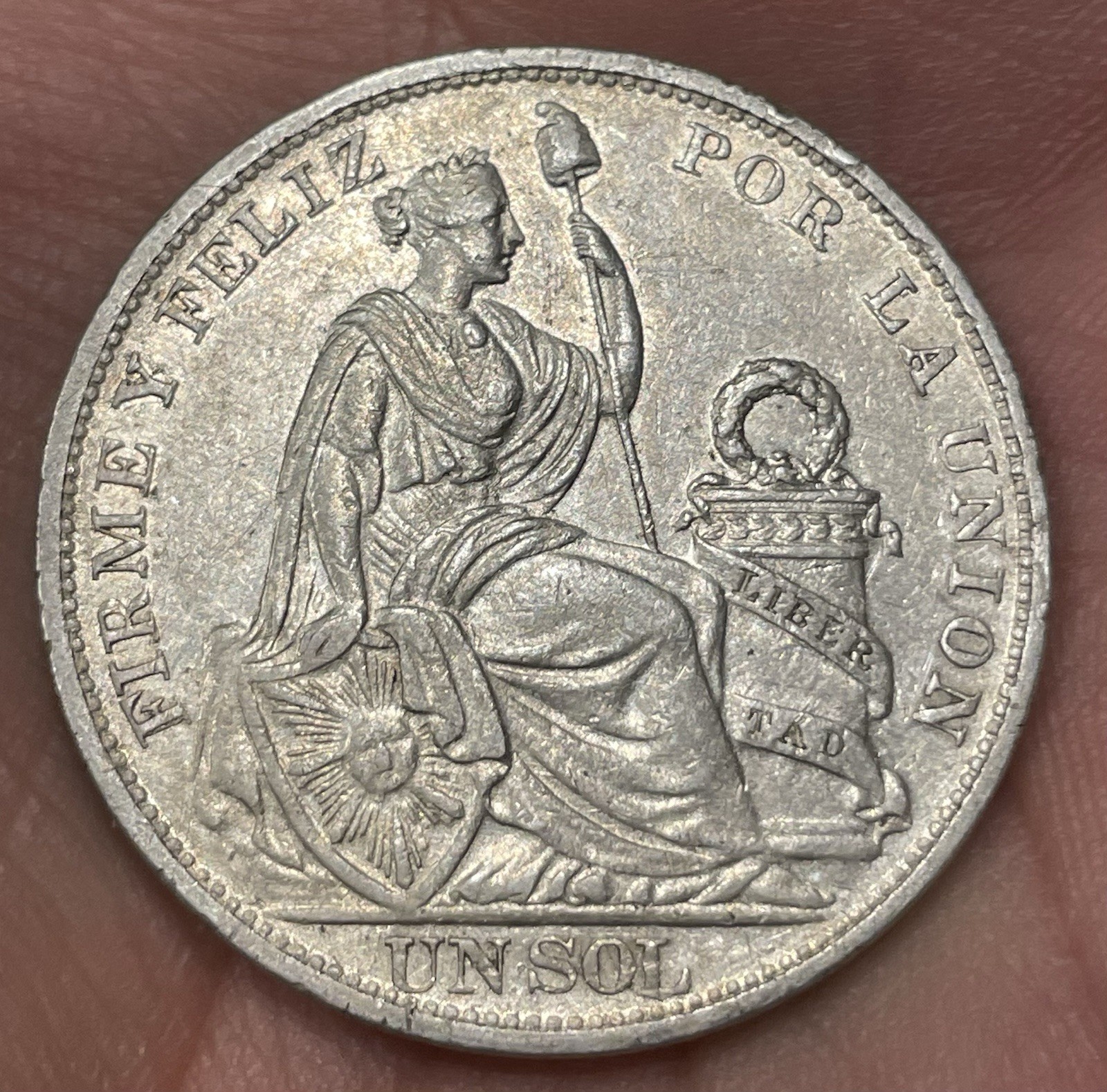 Description: Here’s a lovely looking circulated 1894 Peru Un Sol as shown. There is a good amount of original finish on this example.