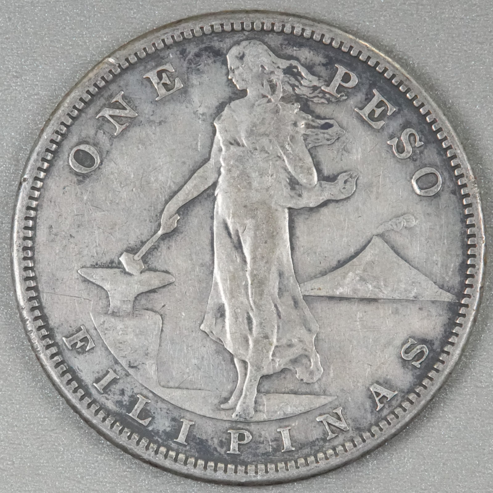 1908-S 1 F Peso Philippines US Territory San Francisco Mint Silver Coin One USA