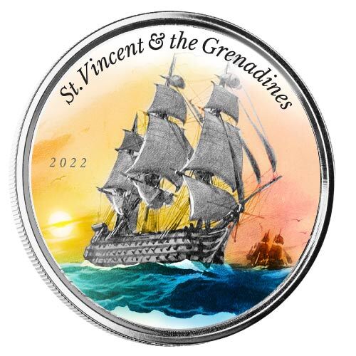 2022 EC8 St Vincent and the Grenadines $2 Colorized Warship 1oz .999 Silver Coin