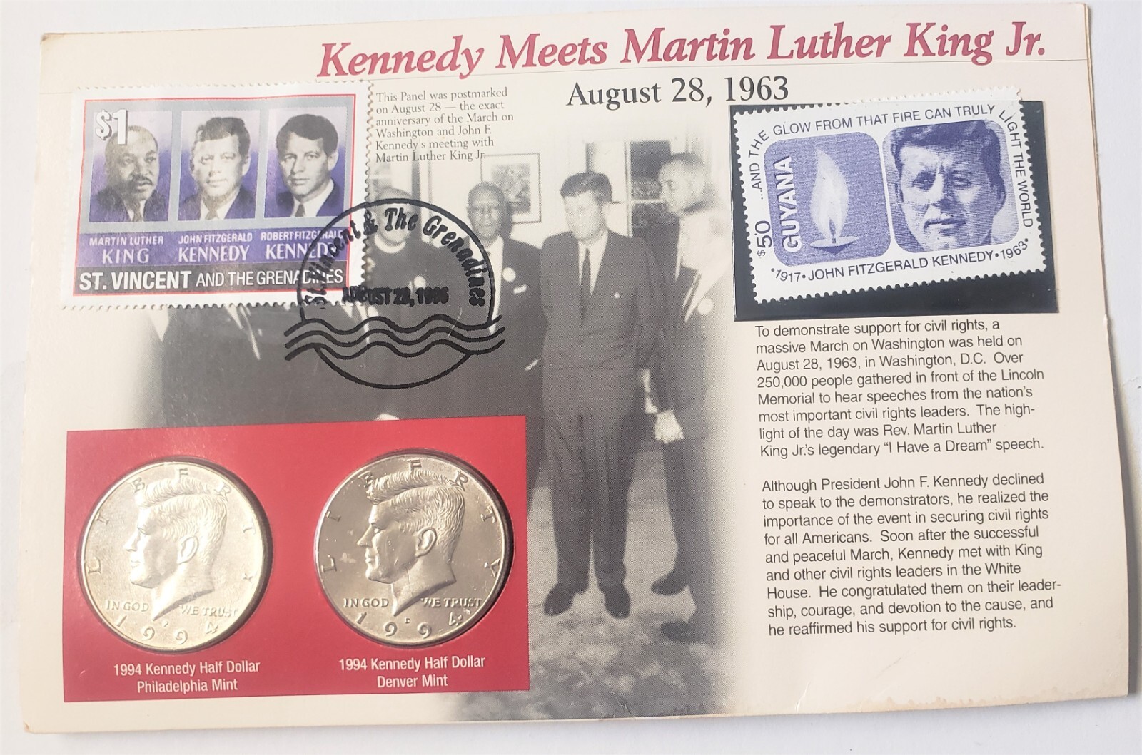 Description: St Vincent and the Grenadines. John F. Kennedy stamp and coin Collection. 1996 issue.