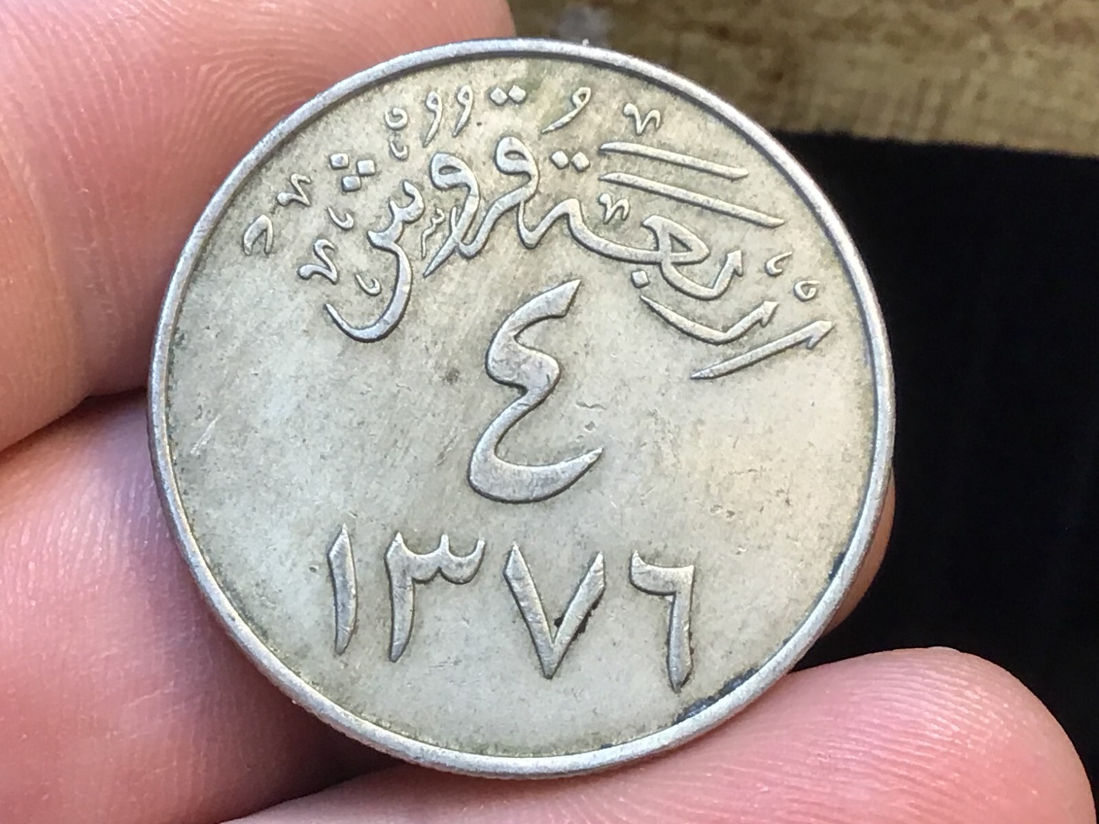 Description: KM# 42 4 GHIRSH. Sold in the Order shown, you get the coin shown, sold in the order shown. Copper-Nickel, 30 mm. Obv: Crossed swords below palm at center.