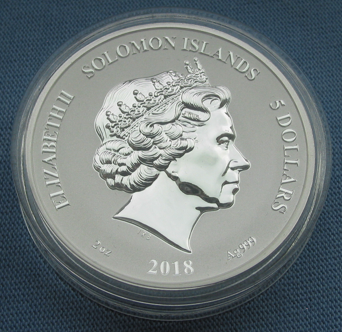 Description: Year Date: 2018. Country: Solomon Islands. Quality: Reverse Proof. Weight: 2 oz.