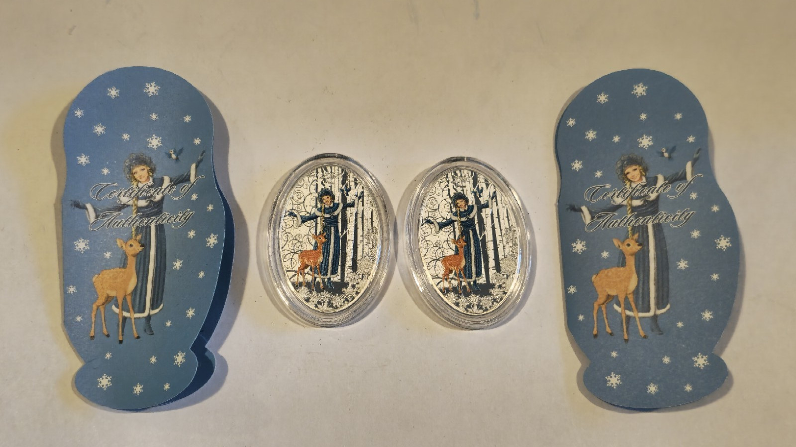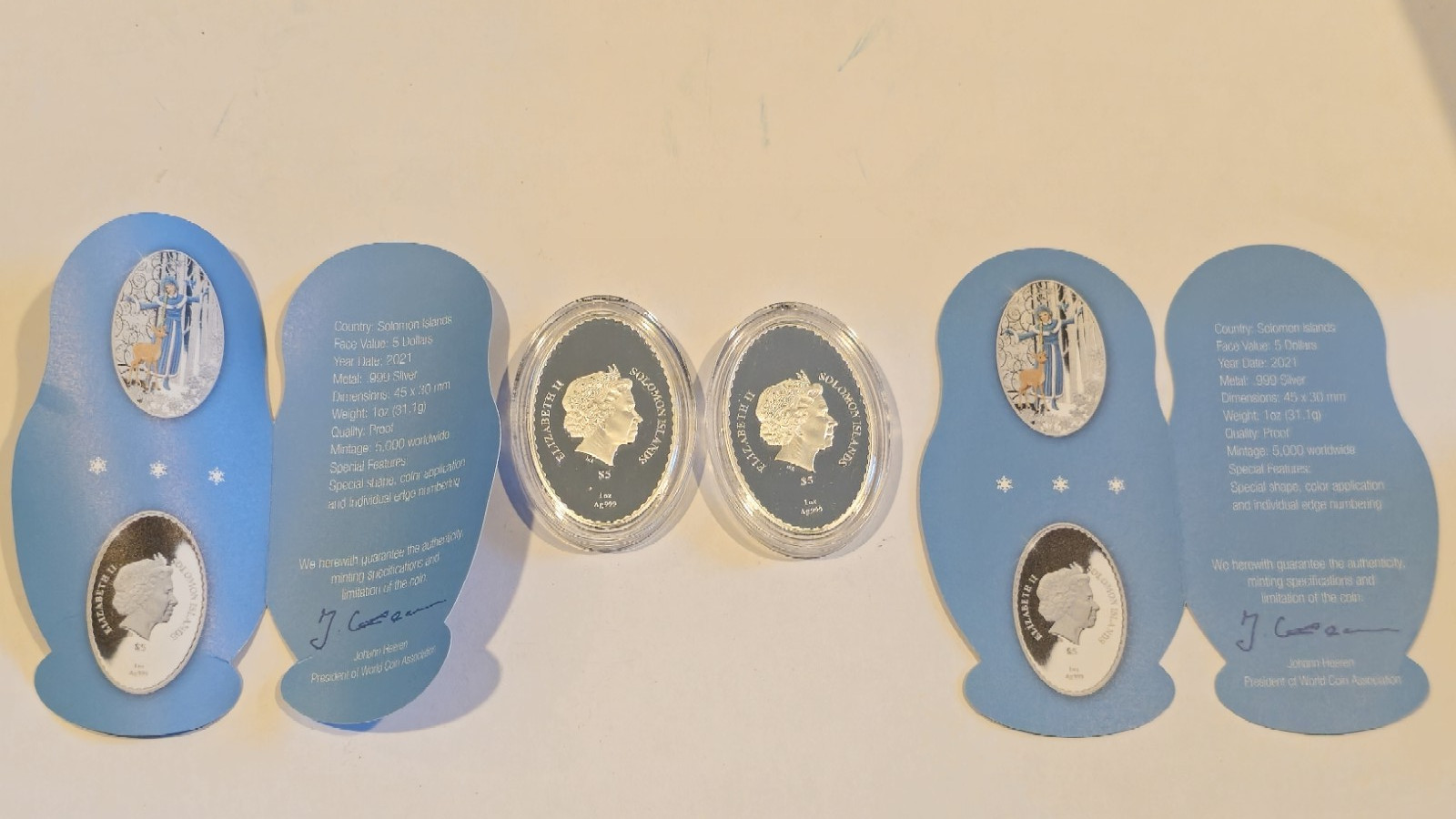Description: The 2021 Snow Maiden Nesting Doll 1 oz Silver Coin is a beautifully crafted collector’s item from the Solomon Islands, part of the Matryoshka series. This coin features a unique design that celebrates the Russian version of Santa Claus, known as Ded Moroz.