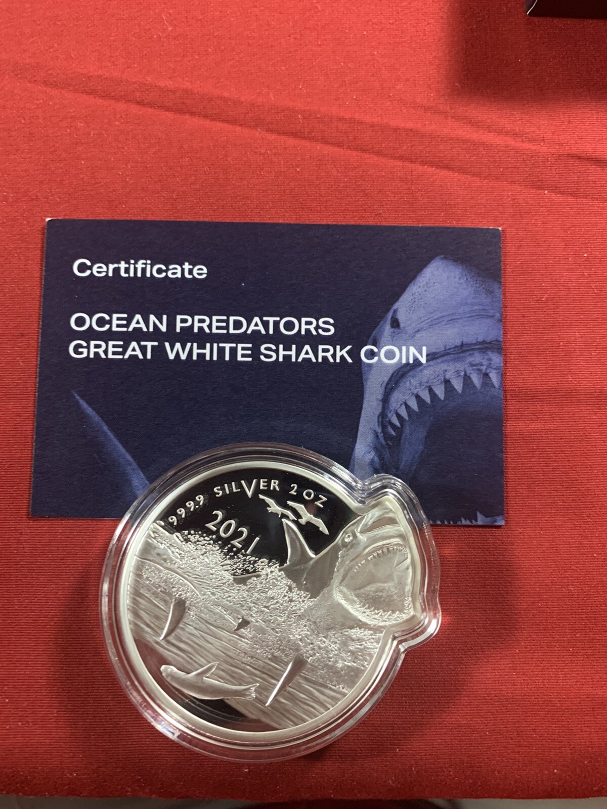 Description: 2021 Solomon Islands Ocean Predator Great White Shark.2 Oz Silver #77 Of 2500. Low Mintage Number in OGP and COA.