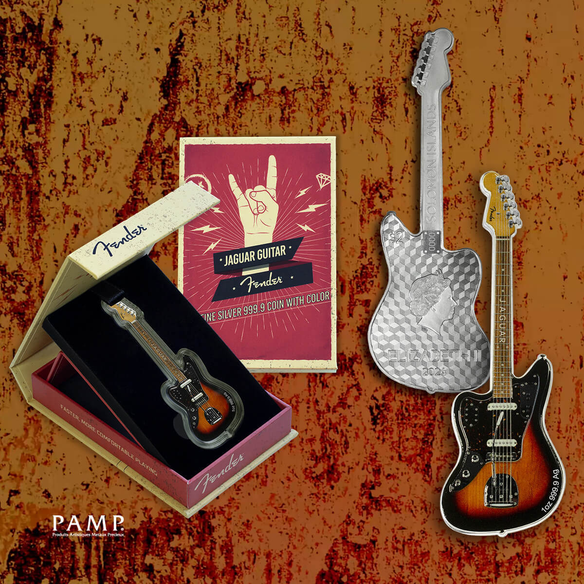 2024 Solomon Islands Fender Jazzmaster Guitar 1 Oz Silver Shaped Coin - PAMP