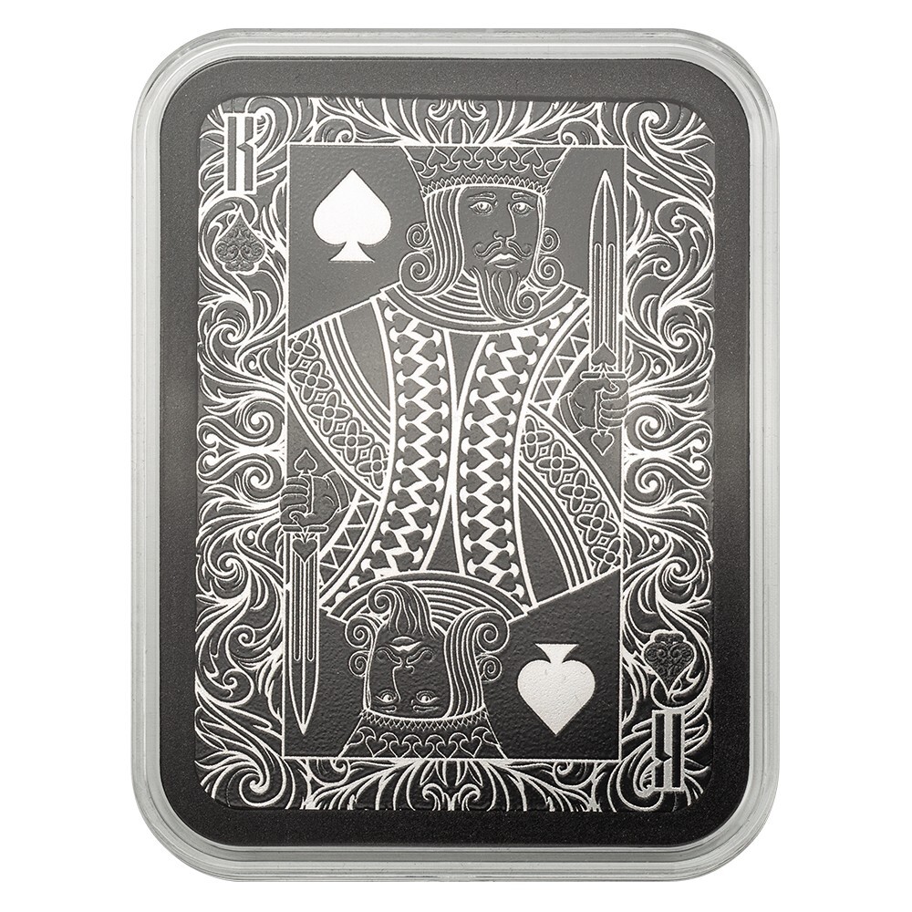 Description: The royal flush represents the best possible five-card hand you can make in poker. This King of Spades is a strong symbol of the deck, captured here in a striking design embellished with a slick black finish!
