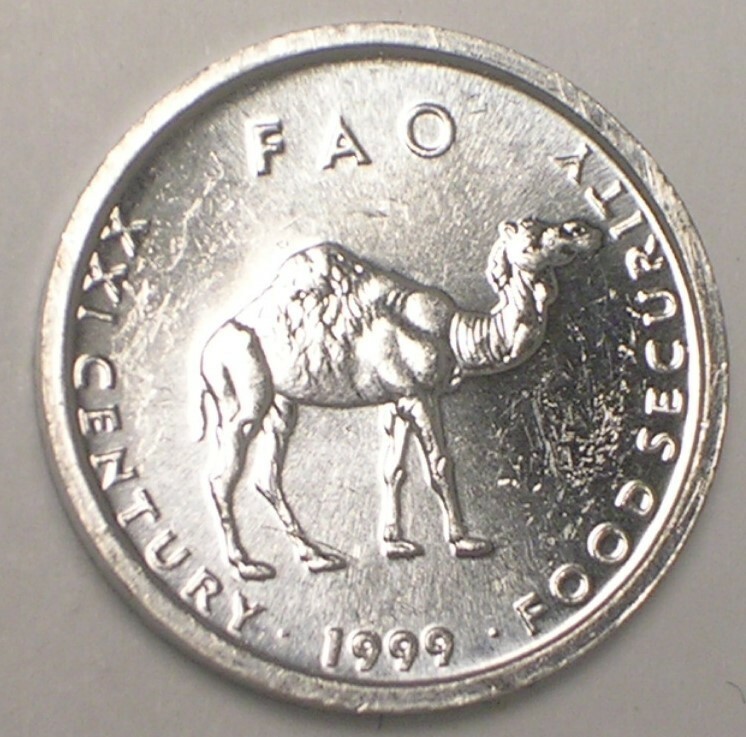 Description: This is a 1999 Ten (10) Shillings FAO coin featuring the Camel with Coat of Arms and Value on Reverse. I have graded this coin as XF; however, I am not a professional coin grader so I ask that you make your own judgment based on the photos that are provided. The coin is made of aluminum and is about the same size as a U.S. Nickel at approximately .8125 inches in diameter.
