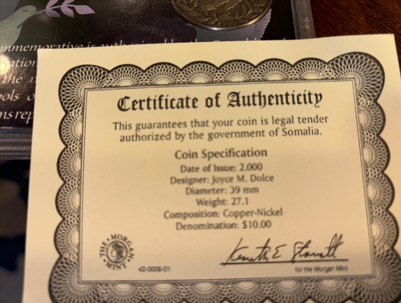 2000 Millennium Commemorative Somalia $10 Coin For World Peace W/COA Current Price: 12,99 USD Location: United States Type: Fixed Price Description: More like this:Somalia 5 shillings 1970 SEE PICTURES L11861950 Somalia 5 Centesimi CoinSomalia Legal Tender Gibson X-plorer Guitar Coin 20042015 Somalia 1 oz Silver Elephant Ram Privy - LOT OF 3Lot of (3) 2017/2019 Somalia 1oz Silver Elephant WMF and ANA Privy w/Box and COA2024 1 oz Somalia Silver Elephant Coin (BU) Comes With Holder ShownWorld Coins - Somalia 5 Shillings 2002 Commemorative FAO BU UNC2023 1 oz Somalia Silver Elephant Coin (Gilded BU)2000 Somalia 10 Shillings Dragon Coin2008 Somalia 100 Shillings 1 oz Silver Elephant Very Rare coin in capsule.1950 Somalia 1 One Somalo - Silver Uncirculated2013 SOMALI ELEPHANT Rare COLORIZED African Wildlife 1oz Silver Coin ~ PRISTINESudan Somalia Coin LOT Sudanese Coins 20 PIASTRES 1 MILLIEME Somali 10 CENTESIMISOMALI REPUBLIC. 2018 500 Shillings - NGC MS70 - Top Pop π₯ Napoleon1999 Somalia Somali 10 Shillings Camel FAO Coin XFSomalia coin 100 Shillings 2010 2014 2015 2016 2017 Silver .999 Elephant animalSomalia 1952 20 Francs P150184 combine shipping1950 Somalia 10 Centesimi Coin UNC World Coin #C6361976 Somalia 10 Senti Coin UNC FAO Commemorative High Grade World Coin #B471Somalia 2023 10-oz Silver African Wildlife Elephant BUSomalia 1 Oz Silver 9999 African Wildlife 2025 Leopard Silver Coin BU / BU2002 Somalia BULL ELEPHANT 5 Shilling coin Animal nice coins of Africa1967 SOMALIA 5 CENTESIMI - Exotic Coin - AU - FREE SHIP - LOT QQQ2000 Somalia coin Chinese Zodiac Calender Animal year of the SNAKE nice coin1950 SOMALIA 1 CENTESIMO COIN - #A71342007 SOMALIA African Wildlife COLORIZED ELEPHANT Silver Coin HARD DATE TO FIND!Somalia. Coins set #7 (3 coins. Proof. Enamel. Gilded) 20132013 Somalian Elephant 1 oz .999 Silver Brilliant Uncirculated Mint Coin Africa2024 Somalia 1 oz Silver African Wildlife Leopard BU .9999 Fine Silver2021 Somalia 100 Shillings 1 oz Silver Elephant Mint State Condition1967 SOMALIA 5 Centisimi PCGS SP65 - KINGS NORTON MINT COLLECTION KM-6Somalia 2025 1-oz Silver Elephant GEM BU1970 Somalia Republic 5 Shillings World Animal Coin2025 Somalia African Wildlife Silver Leopard 1oz 999.9 BU2002 SOMALIA 10 SHILLINGS UNC ALUMINUM COIN FAO CAMEL ANIMAL THEME KM 46Africa Animal Coins: Zambia 1983 Ngwee Namibia 1996 Dollar Somalia 50 Shilling2014 Somalia 1 oz Silver Elephant NGC MS69SOMALIA 5 CENTESIMI 1967 HIGH GRADE B34 #Z3707SOMALILAND 12 COINS SET 2012 CHINESE HOROSCOPE UNC (#582)Somalia 1998 $10 Dollars Gilded African Monkey 1 oz .999 Silver Coin in Capsule2000 Somalia 5 Shilling or Scellin Coin FAO Issue Elephant2023 Somalian African Elephant 1 oz .9999 silver BUSomalia 10 Shillings African Wildlife Elephant 2017 1/10 oz .9999 From Mint Tube2023 Somalia 1 oz Silver African Wildlife Leopard BU in capsule2000 Somalia coin Chinese Zodiac Calender Animal year of the ROOSTER 10 coin !2000 Somalia 10 Shilling "Pig" UNC Coin KM#101 - 25mm Africa Animal CoinSomalia 1970 5 Shillings Cow goat animal Sheep BU 151203 combine shipping2023 Somalia 1 oz Silver African Wildlife Leopard BU Ships Free Now2004 Somali Republic $1 Guitar Coin NGC PF69 Stars and Stripes.(0202)2 Coin Lot 1950 SOMALIA 1 CENTESIMO ELEPHANT COINS #jan191 Tags: Somalia coins Read more articles Previous Post2016 Somalia 1 oz Silver Elephant in Air-Tite Capsule Next PostSomalia 12 Zodiac Constellation Coins With a Card UNC