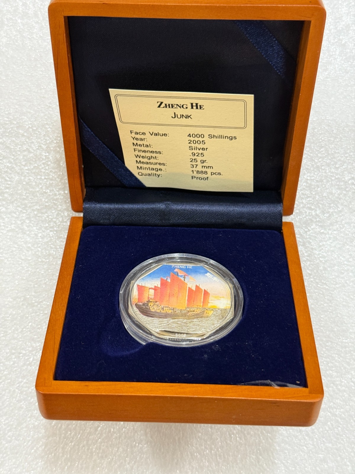 Description: 2005 Somalia Republic 4000 Shillings 25 g Sterling Silver Proof Coin Zheng He.
