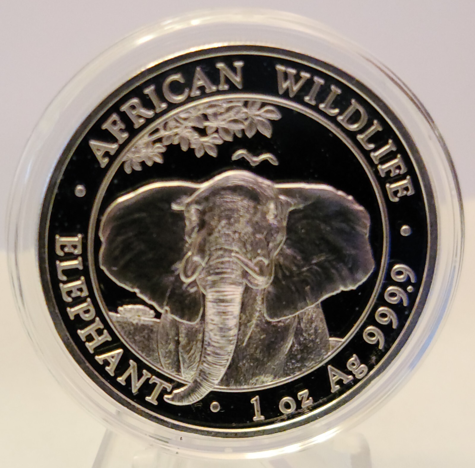 Description: The 2021 Somalia Silver Elephant coin features a beautiful rendition of the majestic creature and contains 1 oz of. 9999 fine Silver. The coin pictured is an example of the one you will receive. Reverse: Features a close-up of an adult elephant with his trunk almost to the edge of the coin.