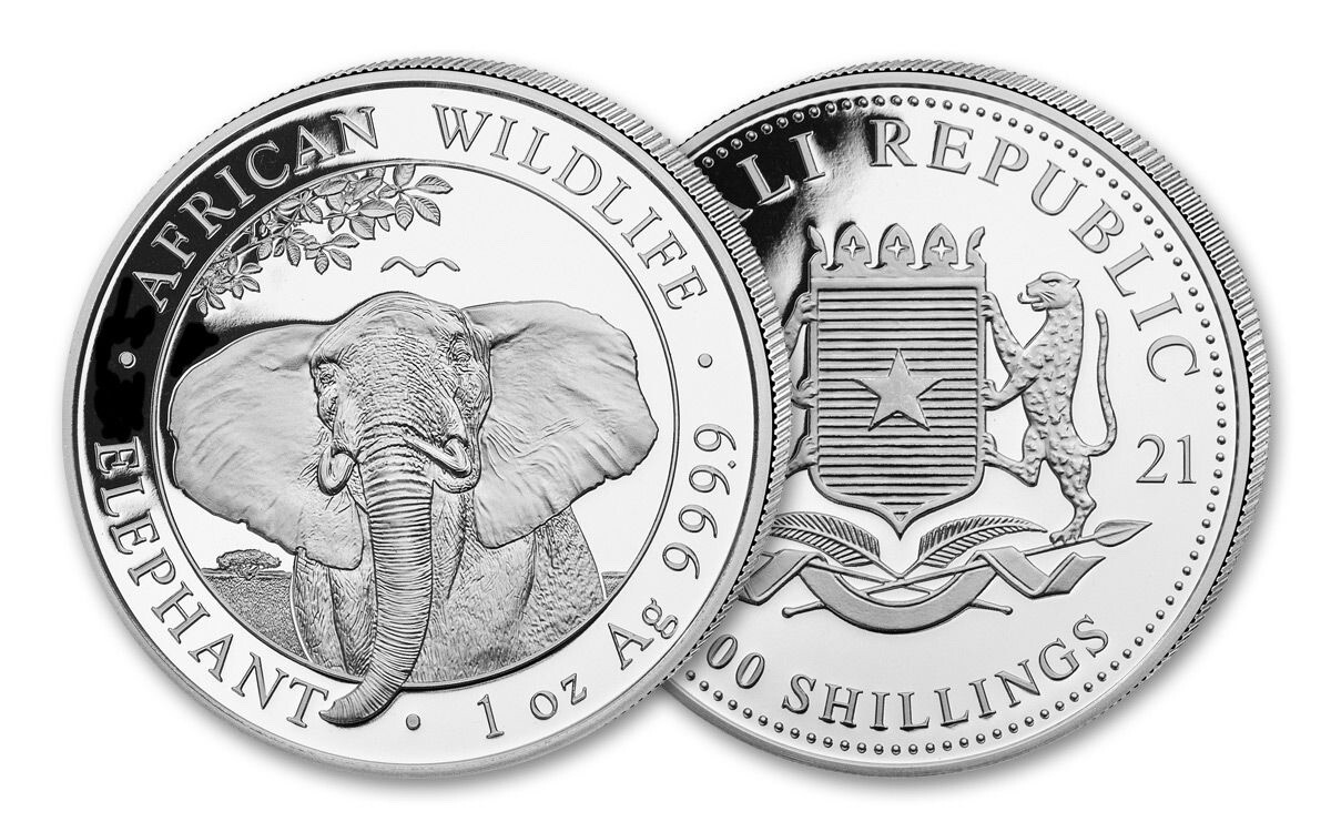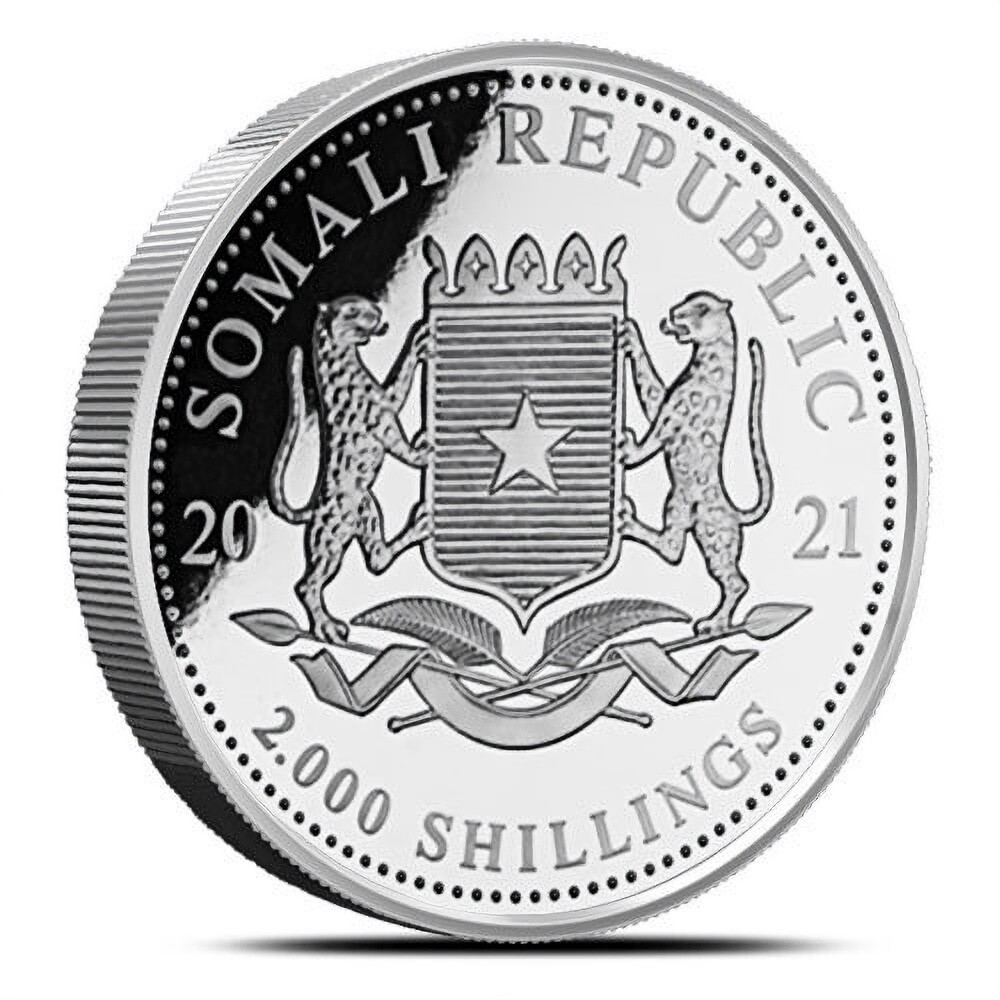 Description: This 2021 Somalia (Somali Republic) Elephant 1 oz Silver Coin in capsule is a must-have for any coin collector. Made from 0.999 fine silver and with a precious metal content per unit of 1 oz, this coin features an intricate design of the national animal of Somalia, the elephant. Certification for this coin is not available, but it is guaranteed to be in excellent condition and comes with a protective capsule. The coin was minted in Somalia and is a great addition to any collection of coins and paper money. Don’t miss out on the opportunity to own this beautiful piece of silver bullion.