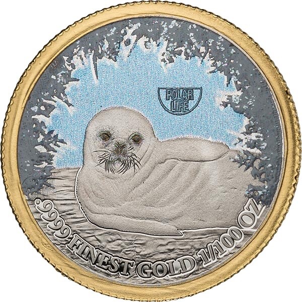 Description: Year: 2022. Part of Superb “Polar Life Mysterious Rhodium” coin series. Country: Somalia. Finish: White Rhodium, Glitter, Chromonite Colour application. Gold Proof Coin. Magnificent coin! Quality: proof.