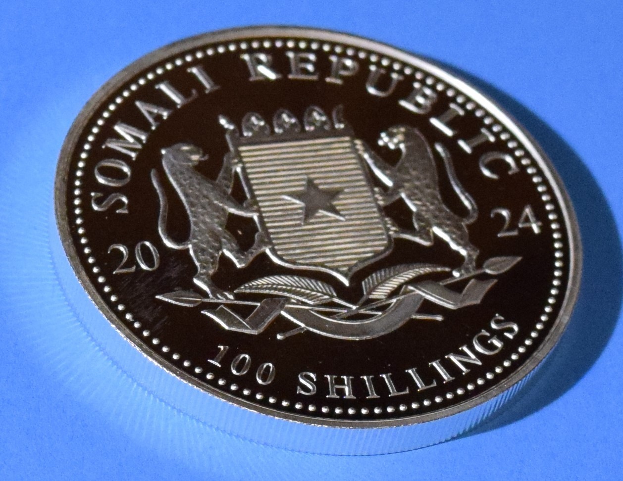 Description: 100 SHILLINGS. Value 100 Shillings (100 Shilin). Issuer Somalia. ELEPHANT 1 oz Ag 999.9. Contains 1 oz of. 9999 fine Silver. Composition Silver (.9999). The Coin Pictured Is The One You Will Receive.