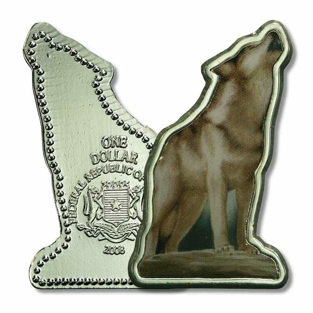 Description: Somalia – Endangered Wildlife – Timber Wolf – $1 – 2008 – Proof – Enameled Coin – Latest in an annual series of six enameled One Dollar legal tender coins authorized by the Federal Republic of Somalia. Somalia – Endangered Wildlife – Timber Wolf – $1 – 2008 – Proof – Enameled Coin – Latest in an annual series of six enameled One Dollar legal tender coins authorized by the Federal Republic of Somalia.