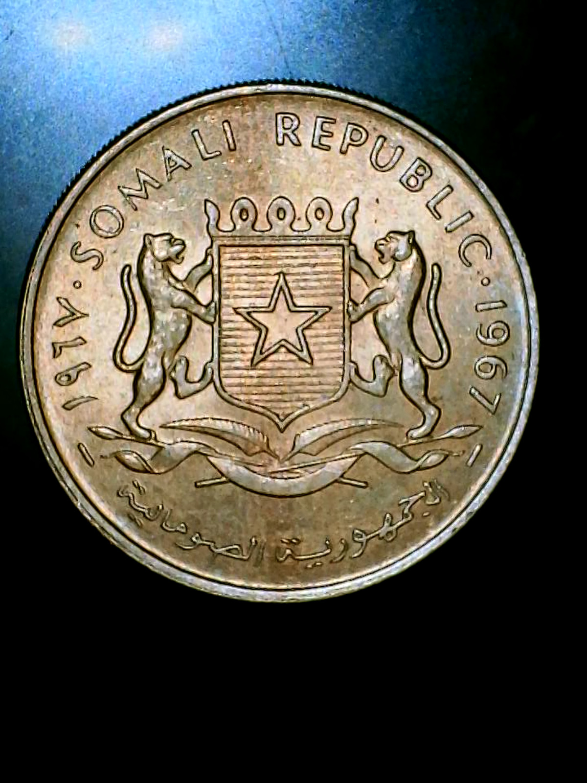 Description: Delve into the rich tapestry of Somali numismatics with this 1967 Somali 1 Shilling coin, a pristine piece that boasts an uncirculated quality.