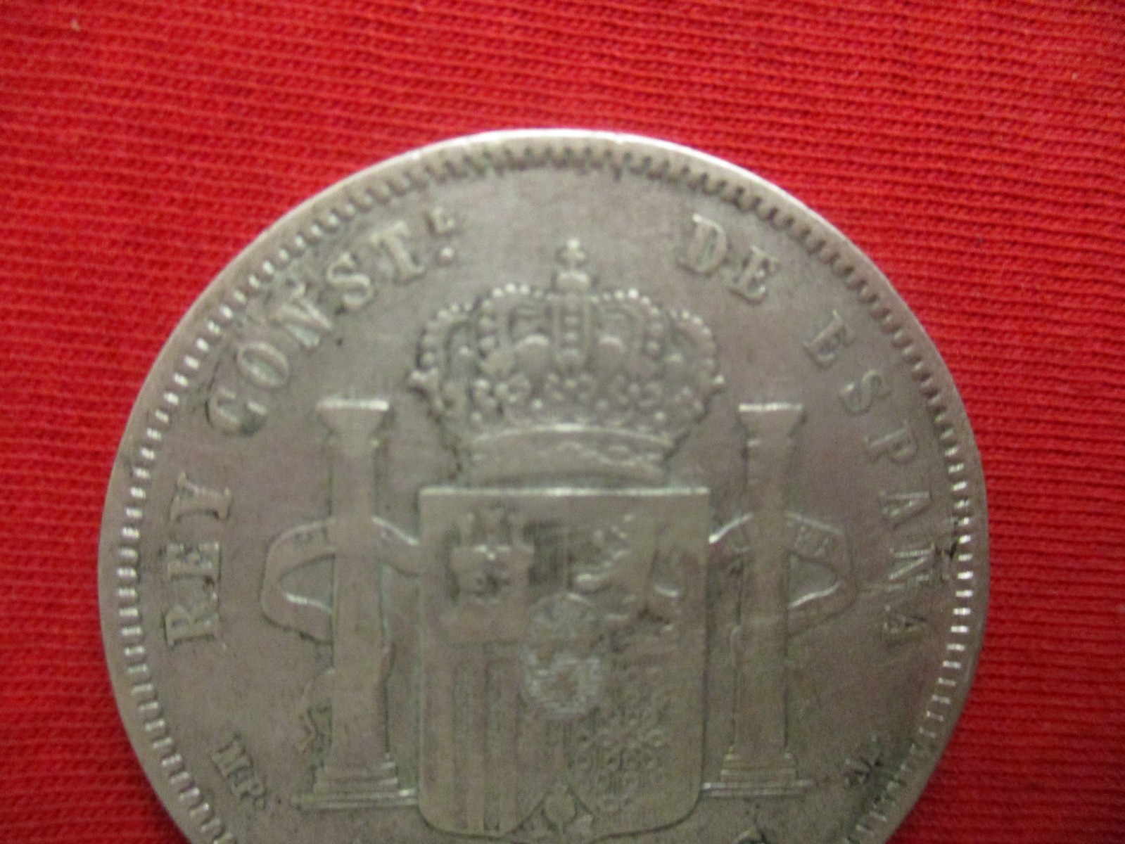1878 DE M SPAIN 5 PESETAS LARGE CROWN SIZE SILVER OLD COIN ALFONSO XII