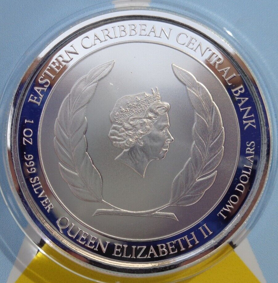 2022 St Lucia 1 Troy Oz .999 Silver Proof Colorized Coin W/ Box and COA F657