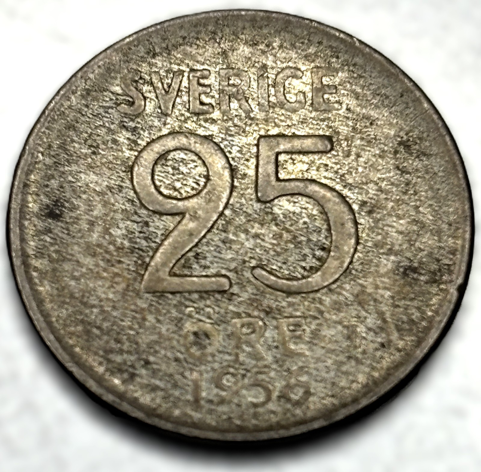 Description: Sweden 1957-TS 25 Ore Gustaf VI. Adolf World Silver Coin.