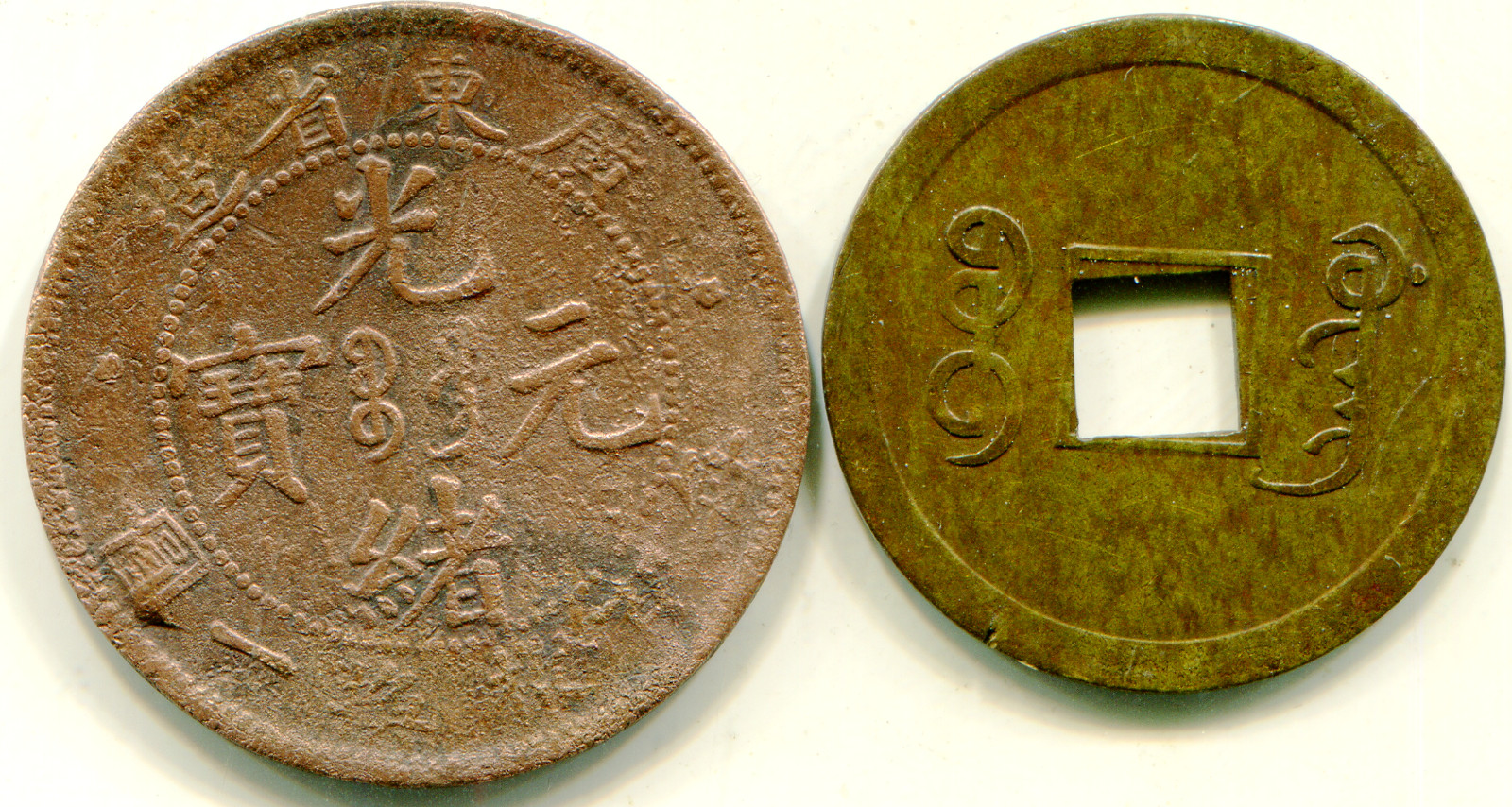Description: The product is a lot of two copper coins from the Kwang-tung province of China, each with a denomination of 10 Cash. These circulated coins are from the historical period of the Empire (up to 1948) and have not been certified. The coins are of brown color and are ungraded. They are a piece of history from the region, showcasing the craftsmanship and artistry of the time period.