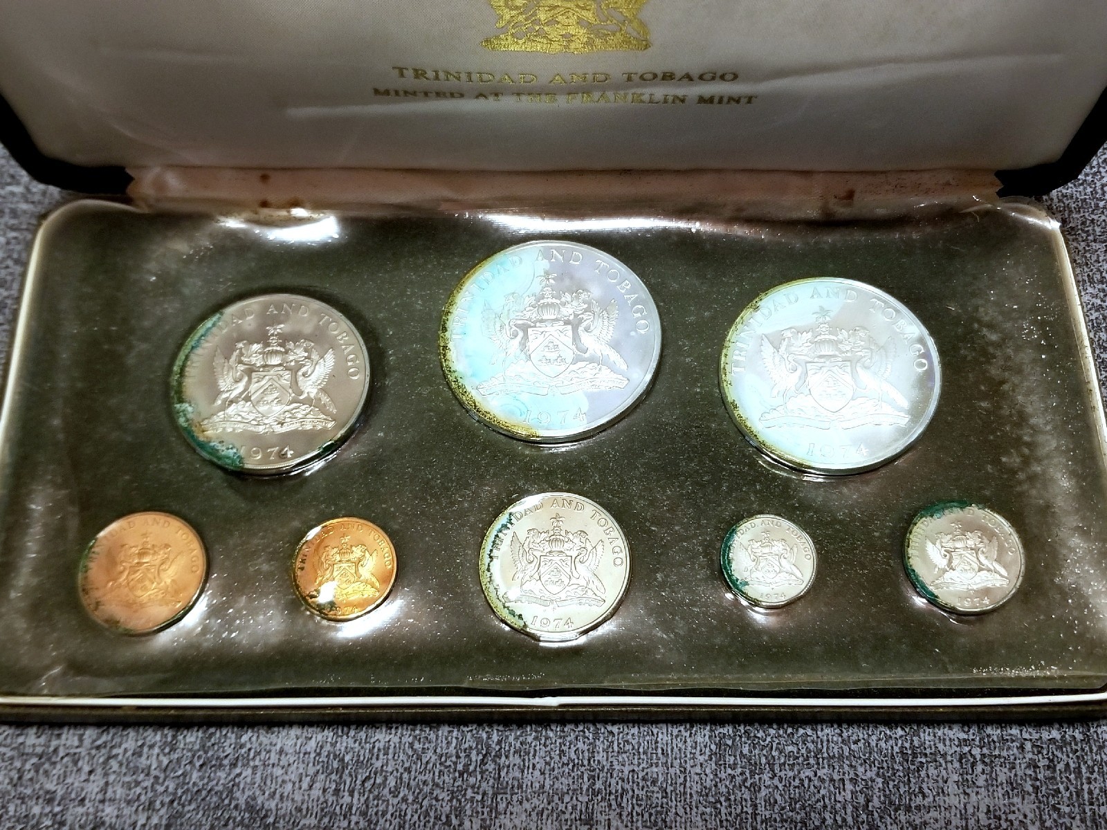 TRINIDAD/TOBAGO KM#PS9 1974 PROOF SET 8 COINS (2- .925 SILVER) 1.92 PURE SILVER