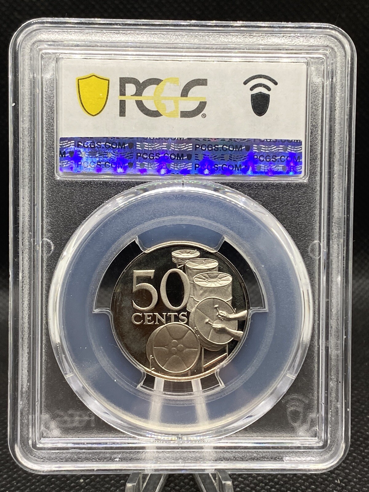 Description: Own a piece of history with this Republic of Trinidad and Tobago 1978 50 Cents coin, graded PR 68 by PCGS. This copper-nickel coin features the Coat of Arms of Trinidad and Tobago on the obverse and the statue of Queen Elizabeth II on the reverse. The coin is in uncirculated condition and comes from the Cayman Islands. This coin is a must-have for any coin collector and is a great addition to any collection.