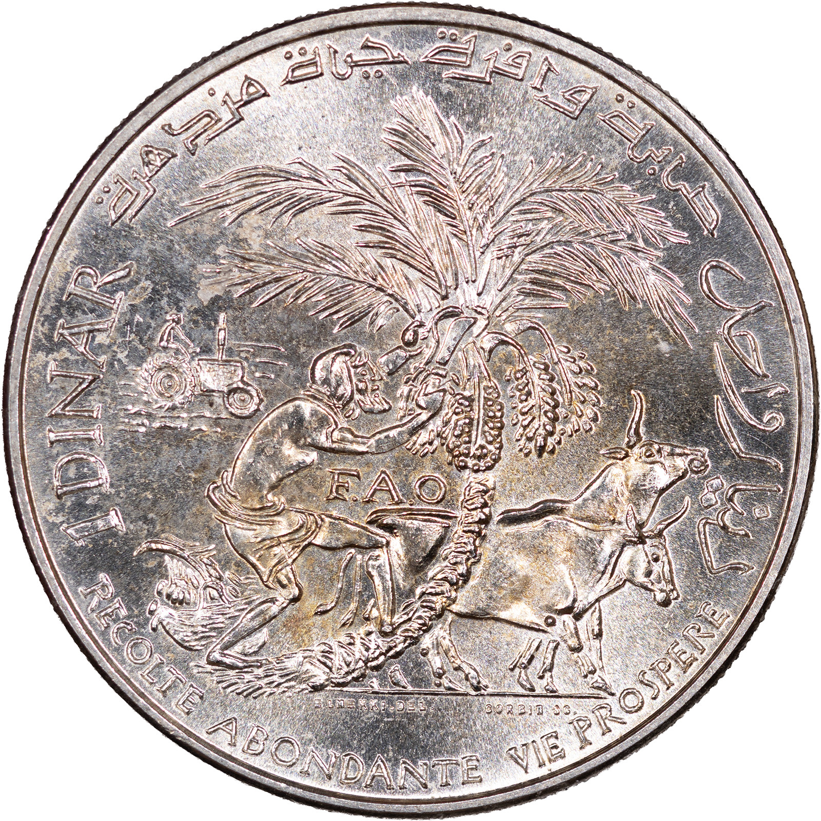Tunisia 1 Dinar 1970 – Uncirculated Silver F.A.O. Issue1