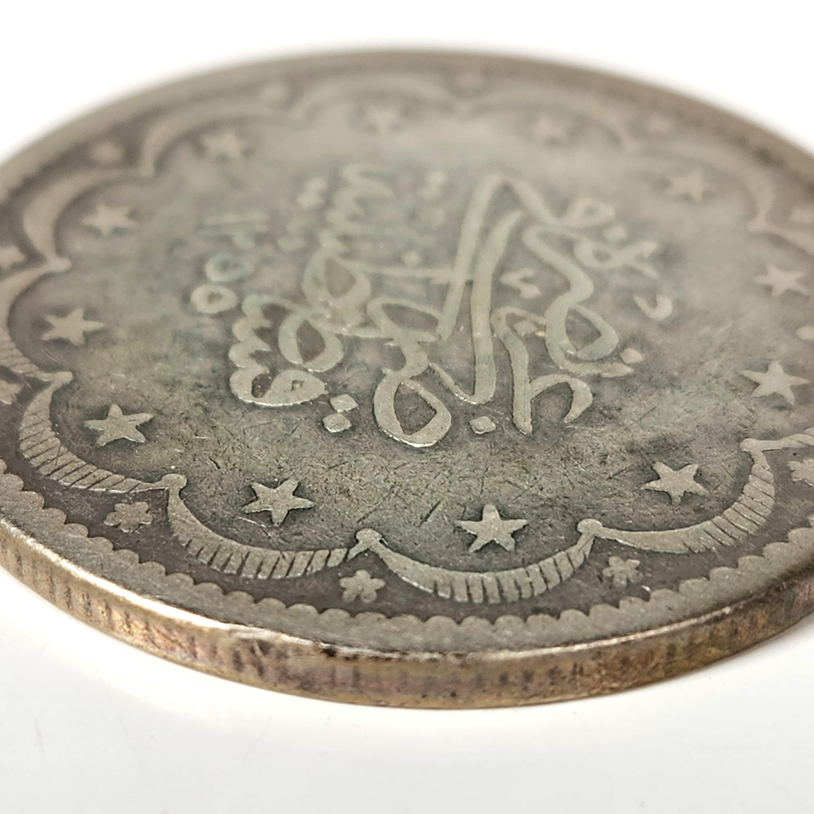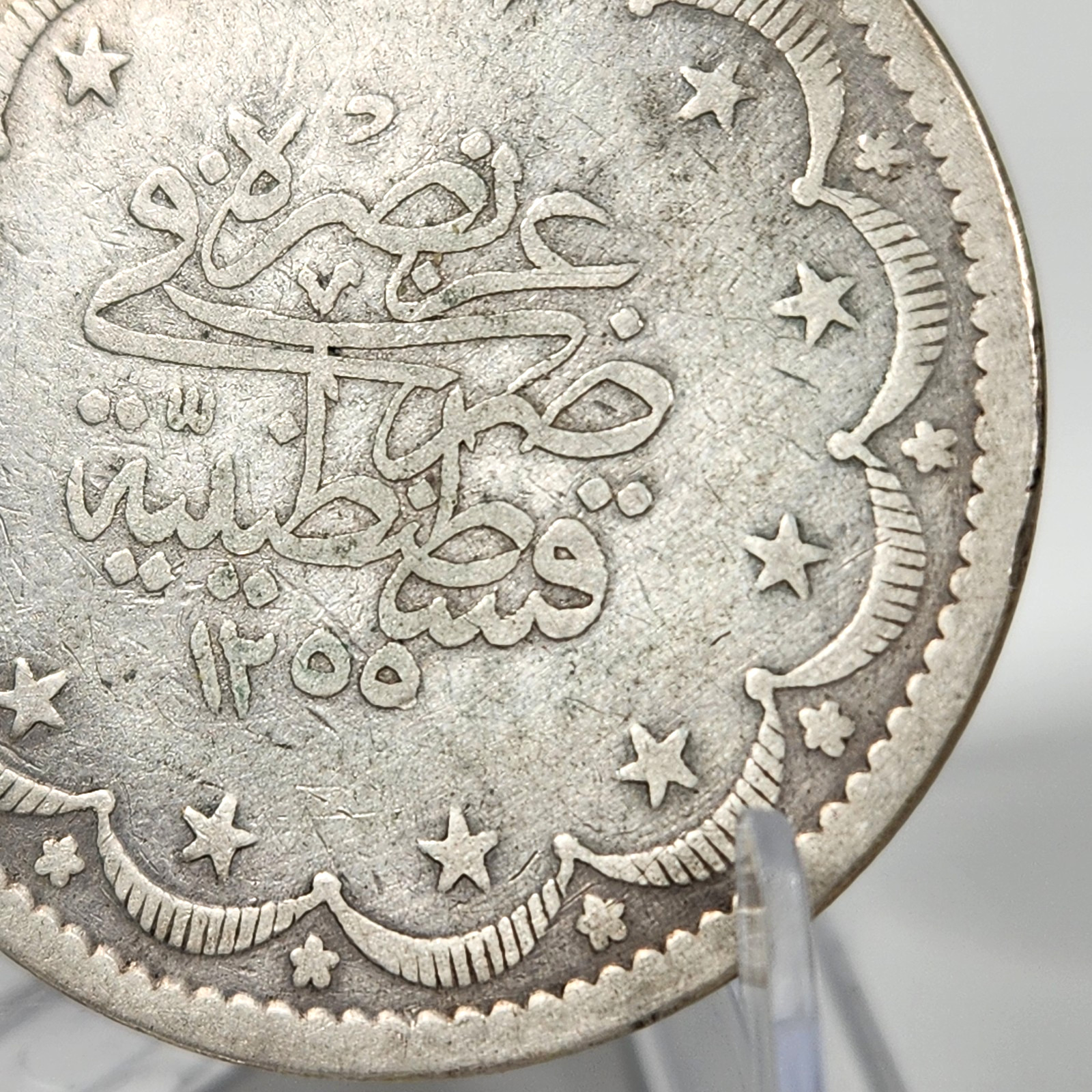 Description: The AH1255/9 (1847) Ottoman 20 Kurus Silver Coin features Sultan Abdulmejid I on its obverse and reverse, showcasing its historical significance from the era of Turkish rule. This coin is a beautiful example of Ottoman currency, with a silver composition and a high level of craftsmanship. The coin is circulated and comes uncertified, making it a valuable addition to any collection of world coins.