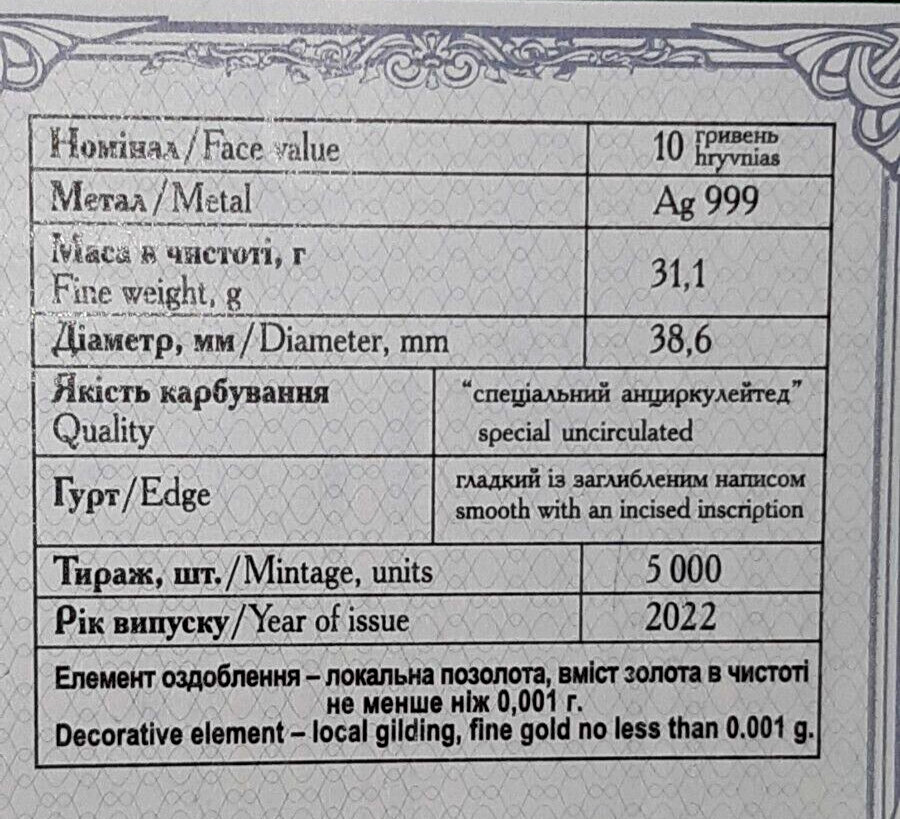 Description: Support Ukraine! Silver 31.1 g. 100% original. Includes case, certificate and box.