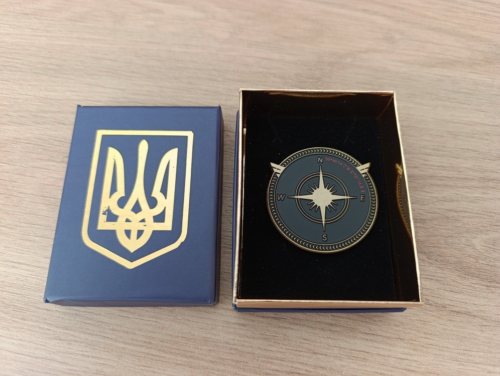 Description: UKRAINIAN MILITARY TOKEN ( CHALLENGE COIN ) IN TRIDENT BOX. Its motto — “Silence before the blow. Accuracy without error. This coin is a symbol of honor and courage, a reminder of the professionalism and importance of those who act imperceptibly, but decisively, for the security and victory of Ukraine.