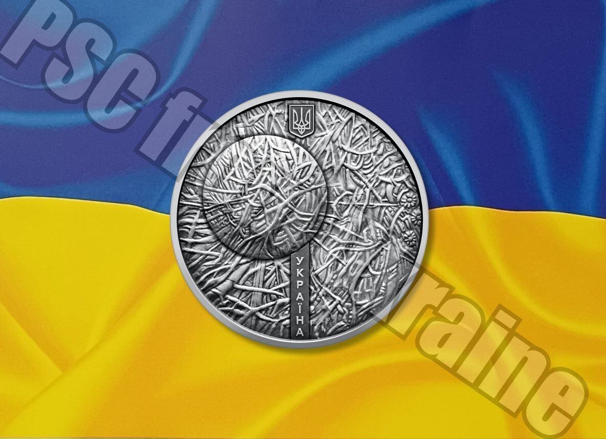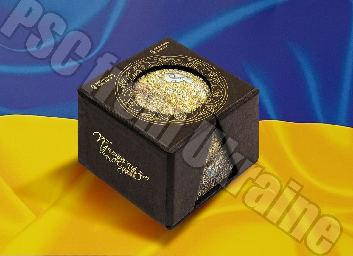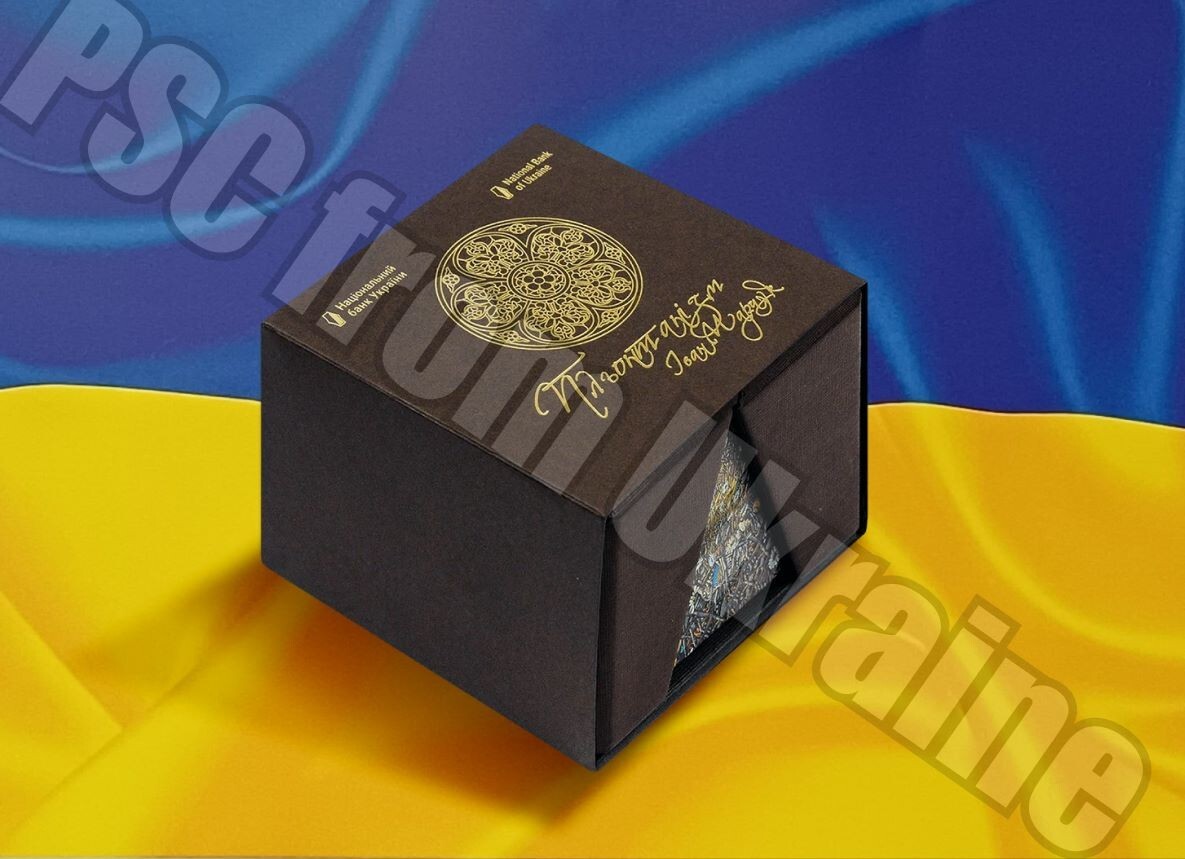 Description: (Marchuk) is dedicated to the unique technique of. is depicted. Artist: Marchuk Ivan; design adaptation β Kuchynska. Plontanism of the brilliant contemporary artist Ivan. top in the center is a small State Emblem of Ukraine.