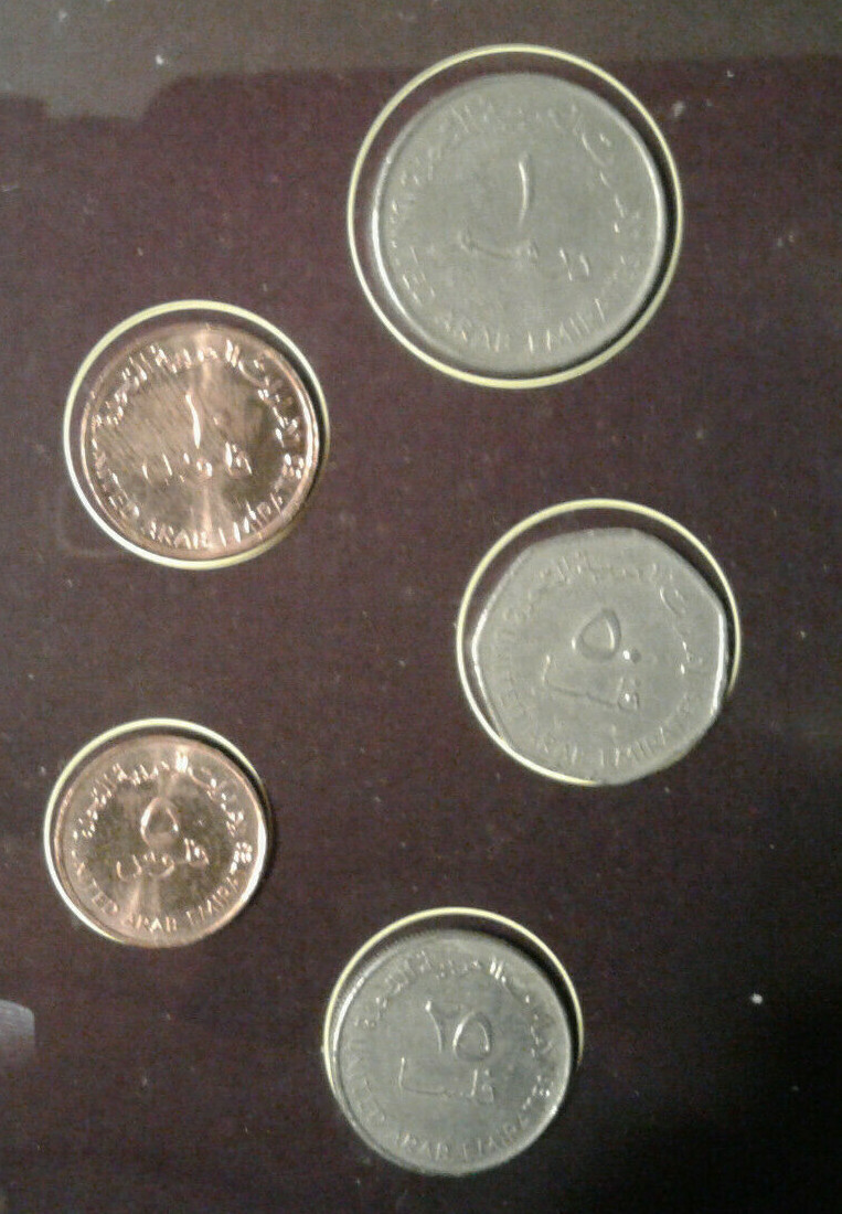 5 COINS: UNITED ARAB EMIRATES. OLD COLLECTIBLE CURRENCY. MIDDLE EAST (UAE) MONEY