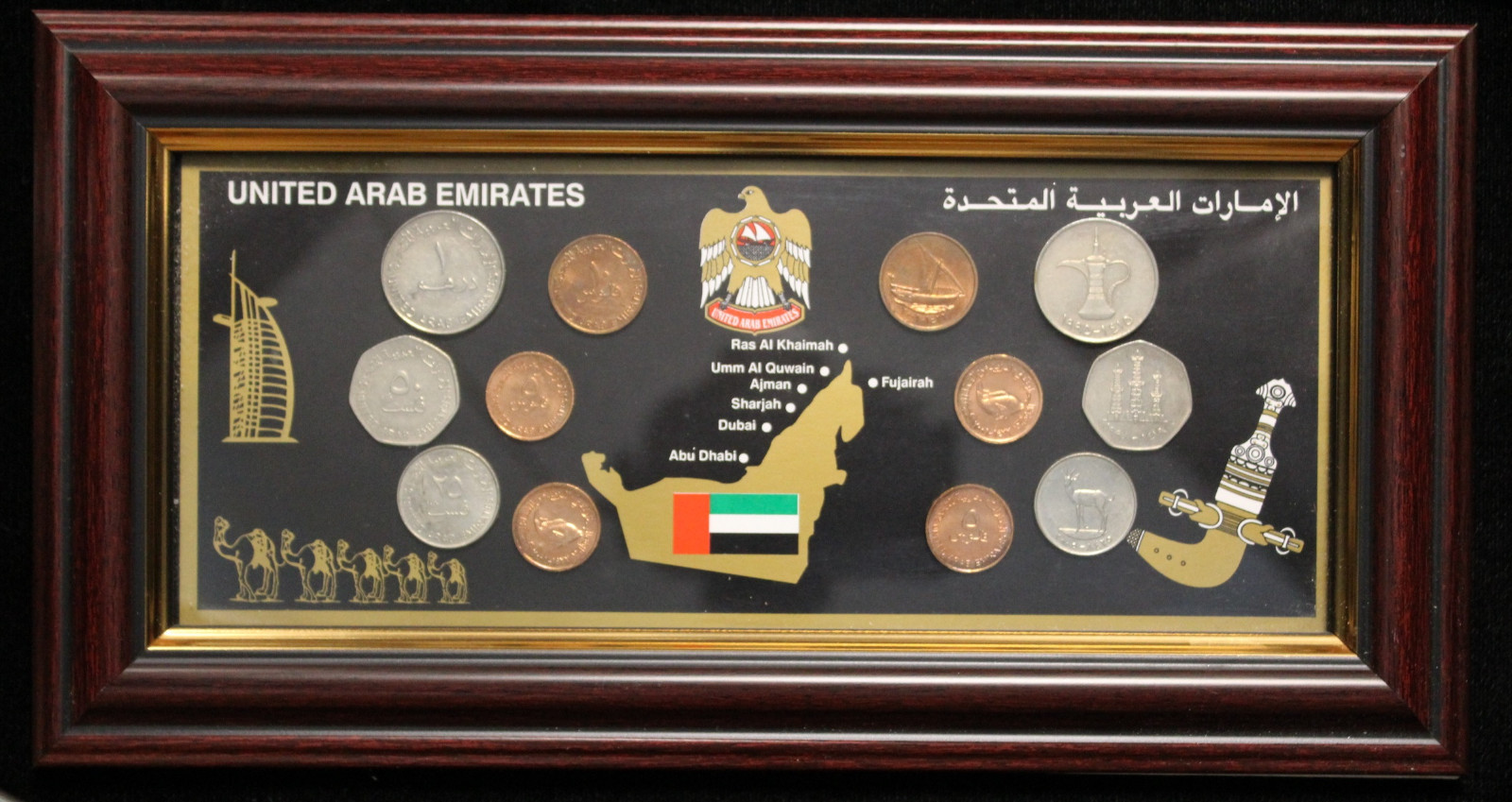 12 Coin Collection United Arab Emirates Framed Display U.A.E 1 Dirham 1998 1419