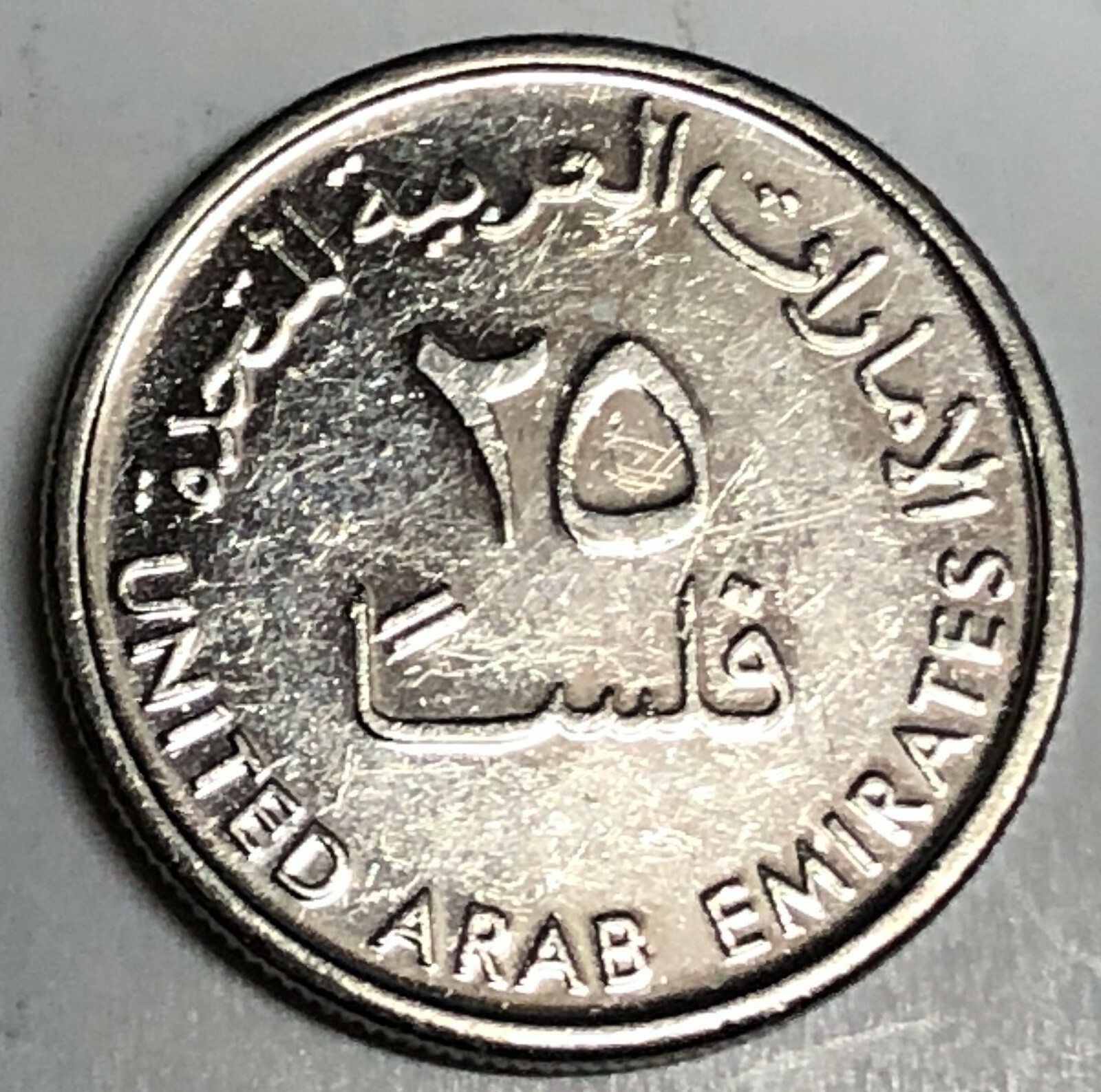Description: 2014 UNITED ARAB EMIRATES 25 FILS COIN: The coin you see is the coin that you will receive.