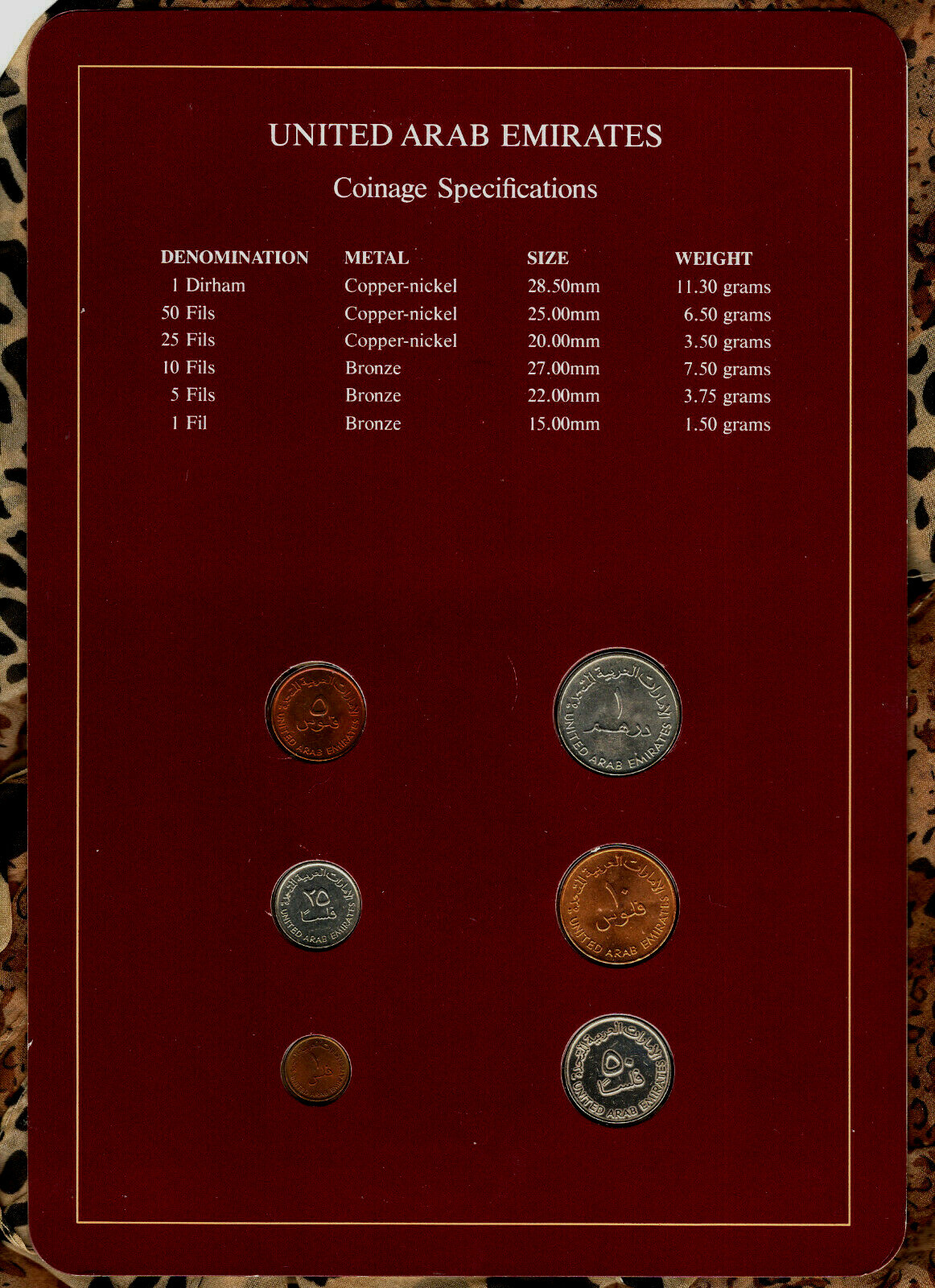 Description: United Arab Emirates. 50 Fils may not be UNC. Coin Sets of All Nations Collection. “Coin Sets of All Nations” series. This highly collectible set includes one of each coin, MINT and possibly uncirculated, preserved behind plastic inside a thick cardboard display.
