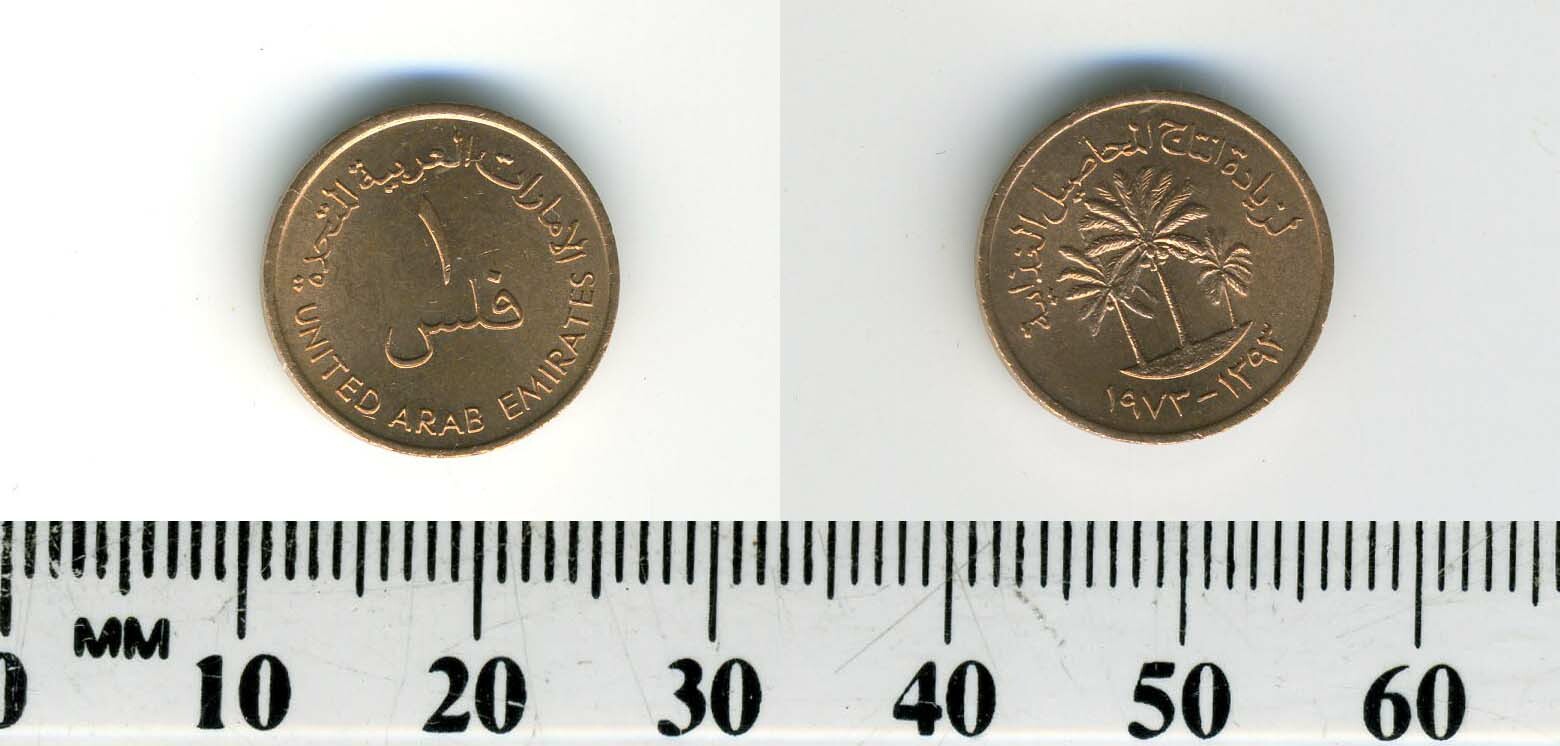 1973 UNITED ARAB EMIRATES 1 FILS (AH 1393) CIRCULATED COIN #FC1960 FREE SandH TOO!