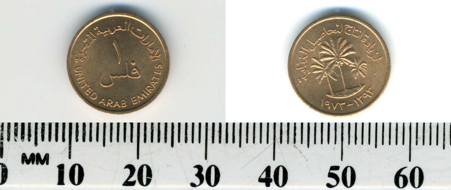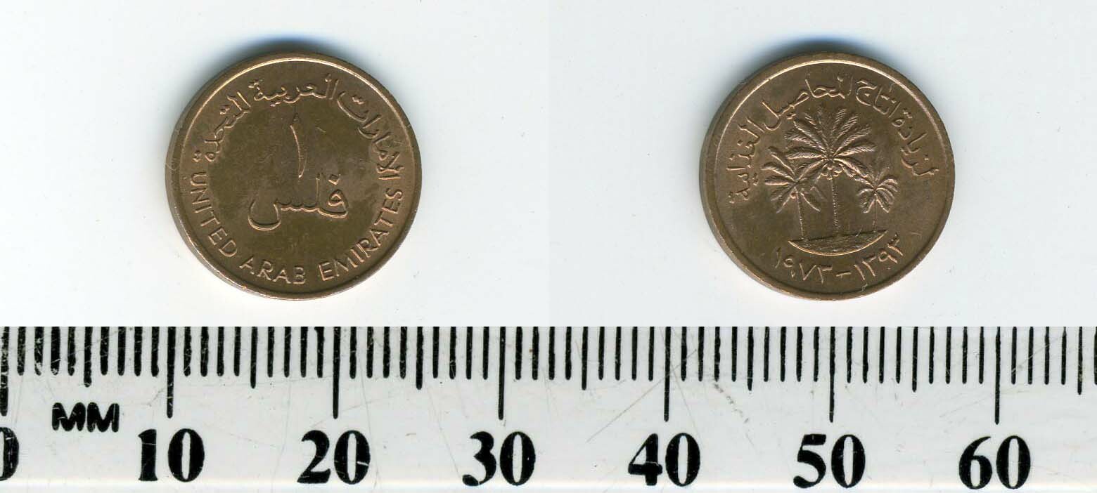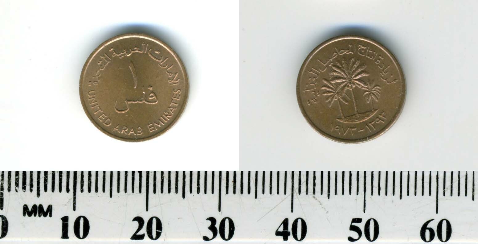 Description: This is a 1 Fils bronze coin minted for use in United Arab Emirates in 1973. Each coin for sale is in an excellent condition.