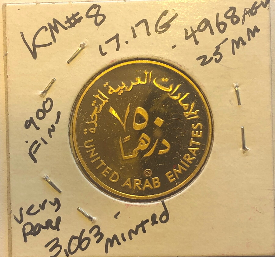 RARE 1976 UNITED ARAB EMIRATES 500 DIRHAMS UAE 5TH NATIONAL DAY GOLD COIN C334