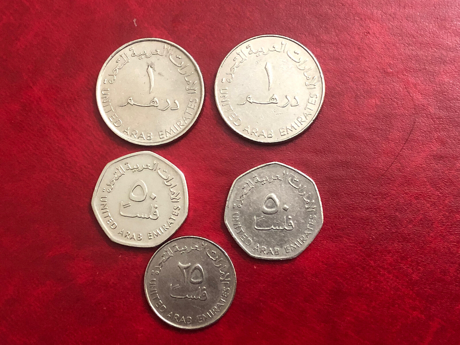 Lot of 5 United Arab Emirates UAE 1 Dirham Coins - All Different Dates #WA93013