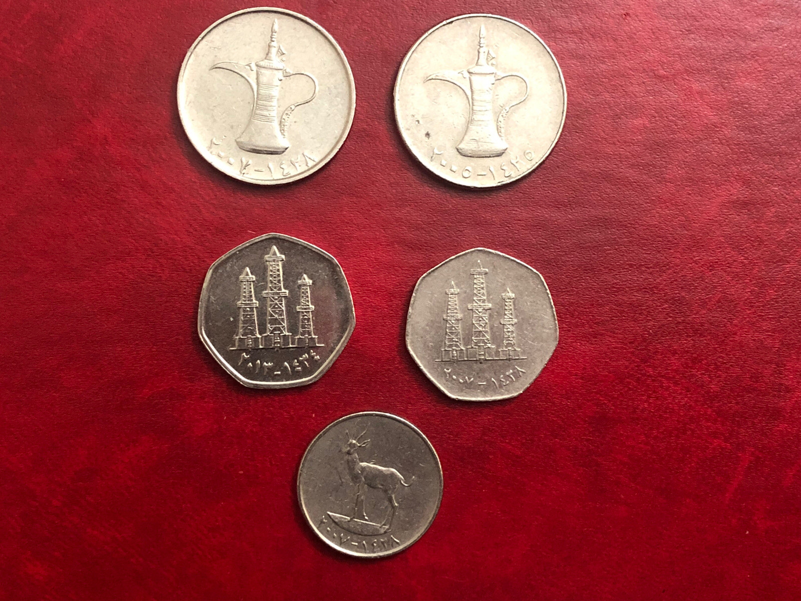 Description: United arab emirates 5 coins 2005-2013.