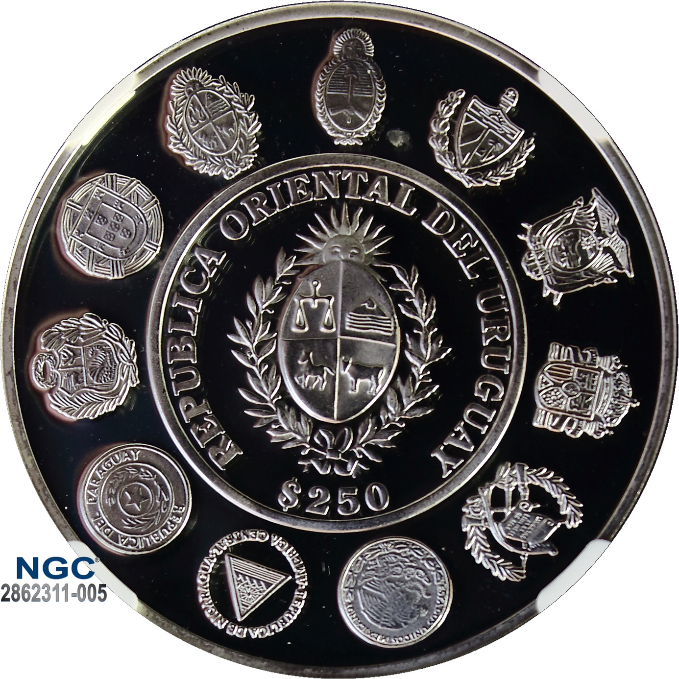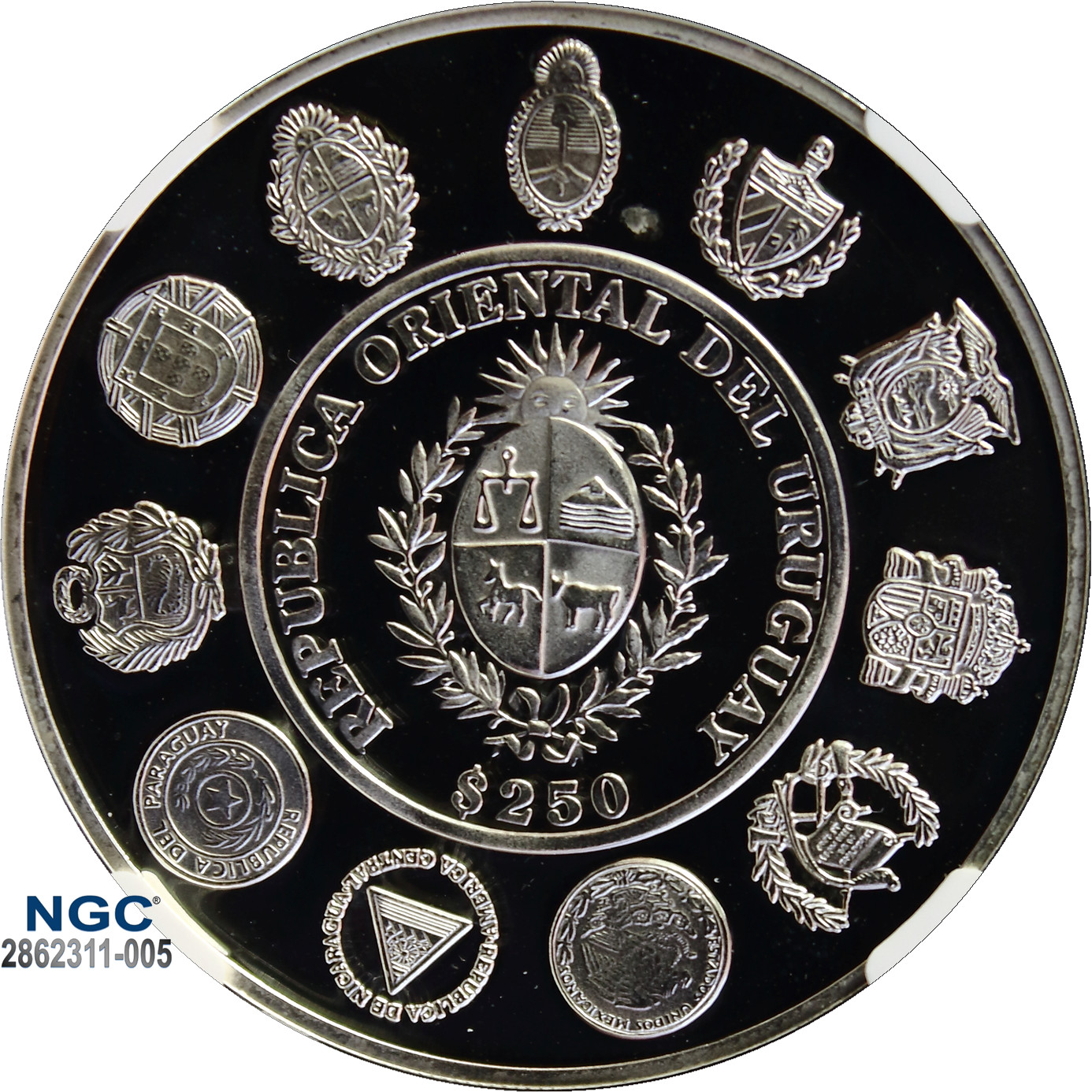 Uruguay 1961 10 Pesos PCGS MS 64 Revolution Sesquicentennial PI0132 combine ship