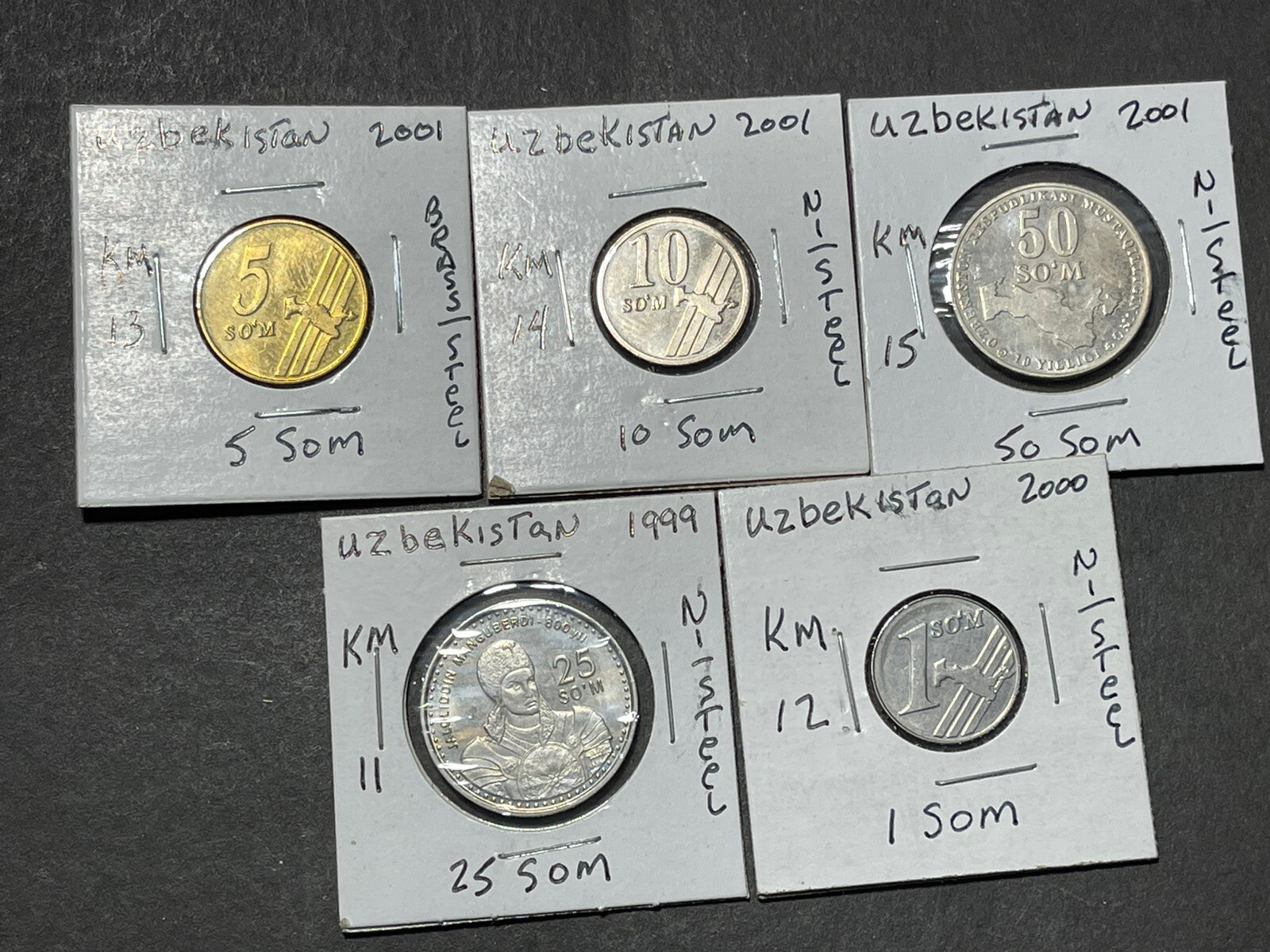 UZBEKISTAN 10 Som 1997 1998 1999 2000 . 2001 year. Lot 5 coins