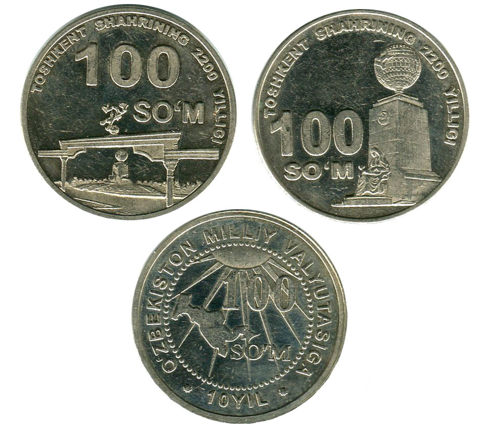 UZBEKISTAN 50 coins 100 som 2004 2009 and 2009 (3 TYPES)