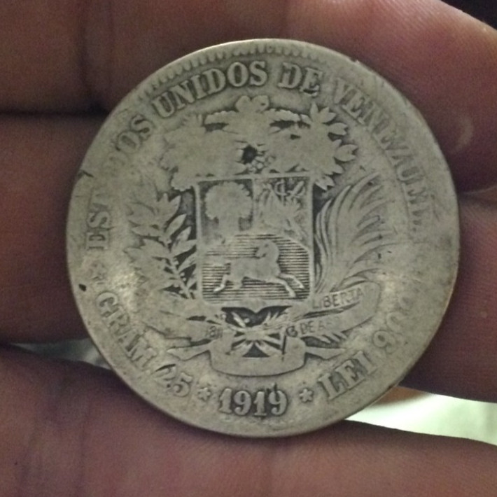 VENEZUELA ~ 5 BOLIVARES .900 silver 1919 LIBERTADOR COIN