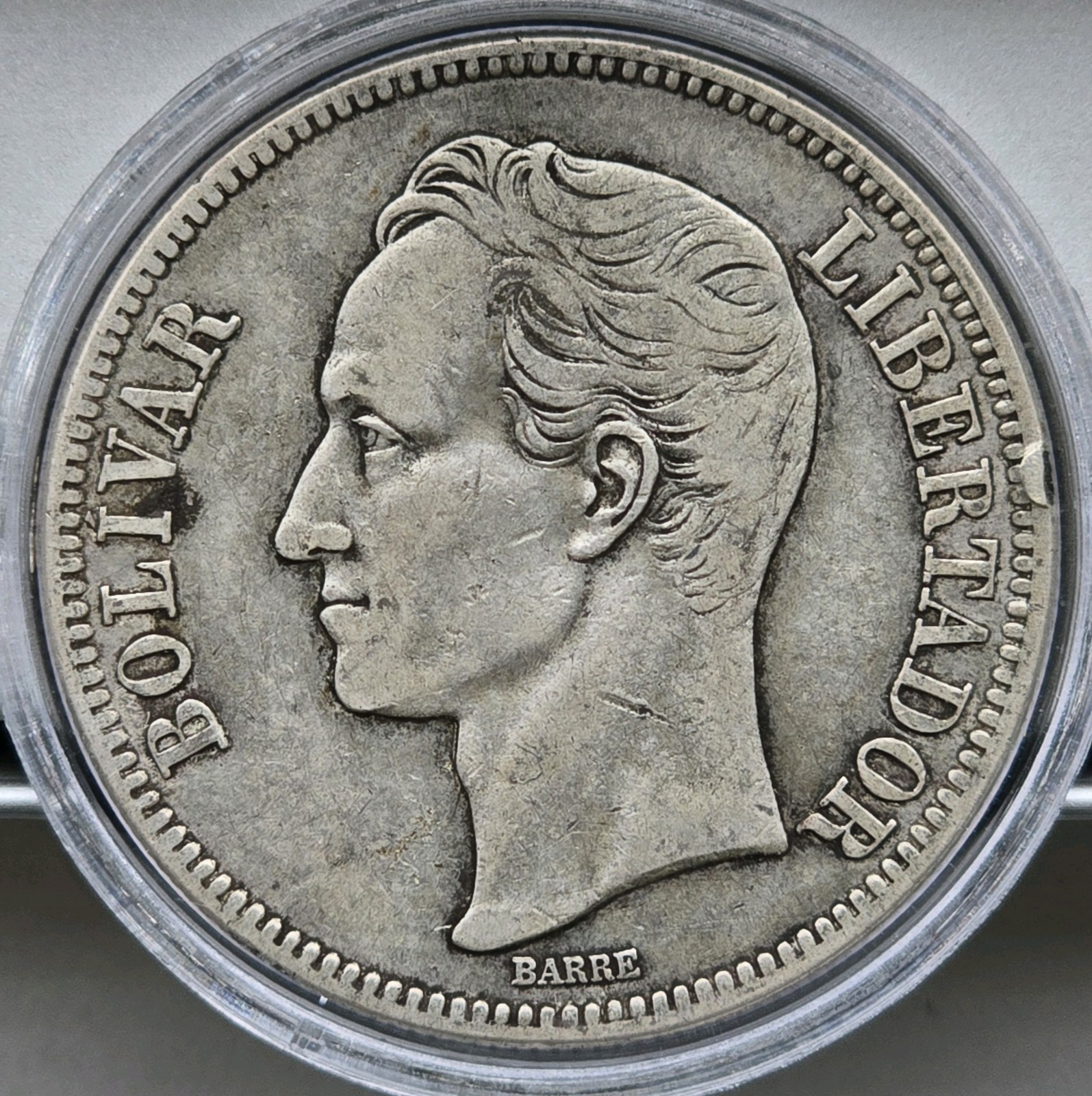 1900 VENEZUELA - Bolivar - 5 BOLIVARES 90% SIVER COIN